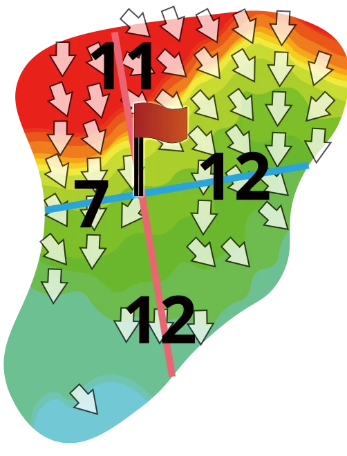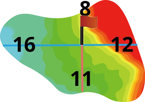 ・グリーンの起伏をヒートマップで表現 ・現在地から見た形状に自動で回転