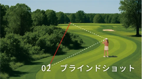 木や斜面でピンが見えない状況でも、ターゲットを正確に捕捉。 攻めのゴルフを可能にします。