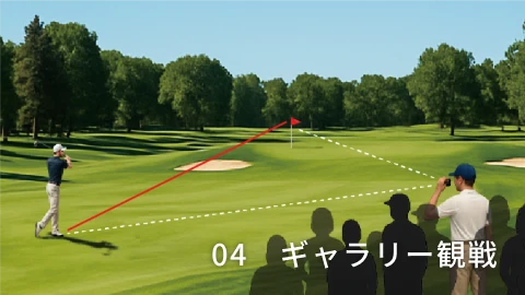 選手の飛距離やピンまでの残距離をリアルタイムで確認。 プロの凄さを「数字」で体感できます。