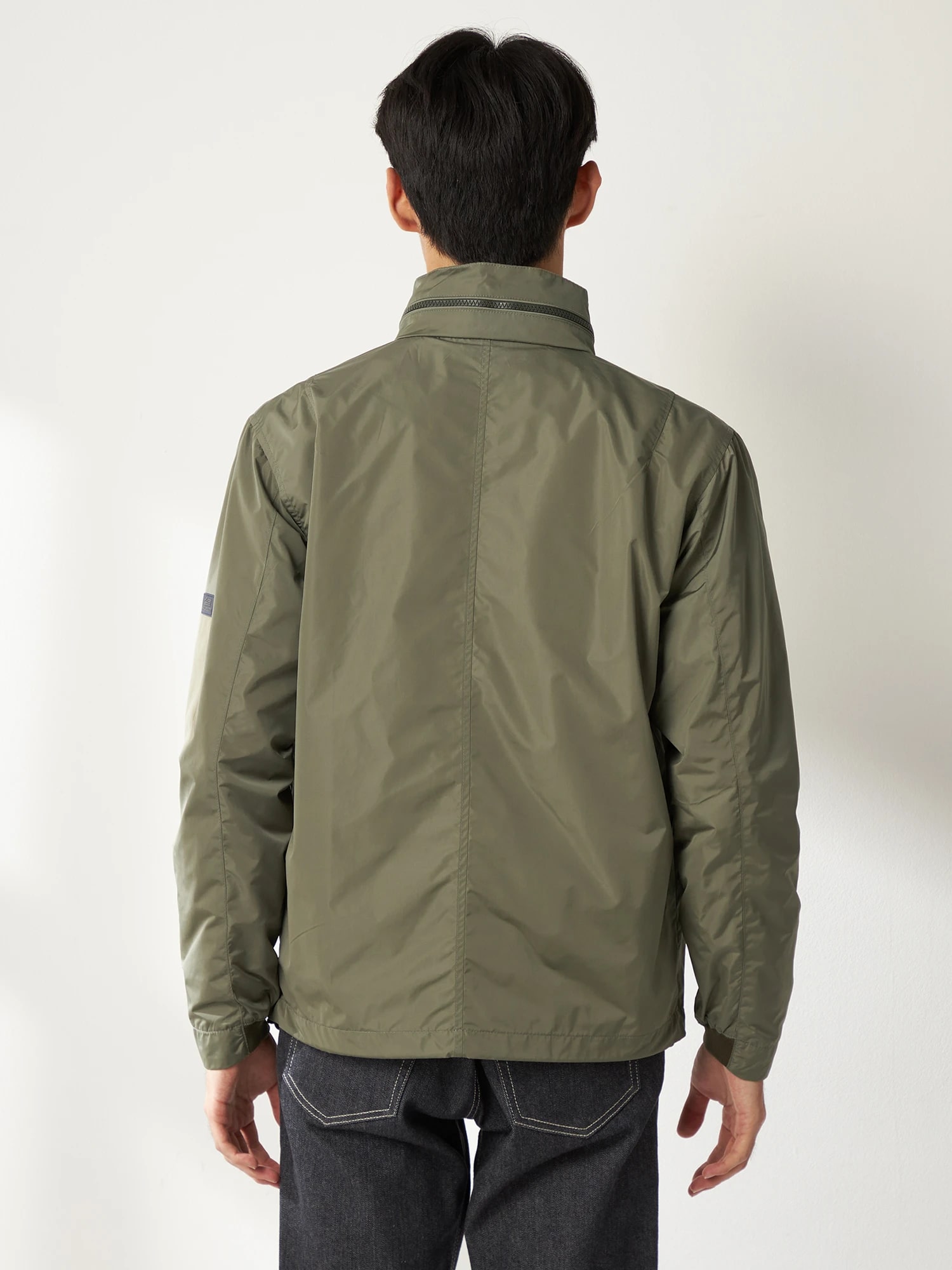 大人のナイロンショートブルゾン■デザイン襟にフードを収納したフロントファスナーのシンプルでスポーティなデザインです。■素材表ナイロン100%の微光沢素材、裏地に白×黒配色のマックレガーチェックをプリントしたメッシュを使用しています。■コーディネート裾のスピンドルによってフィット感の調整ができ、カットソーとコーディネートする事でスポーティな着こなしを楽しむことができます。