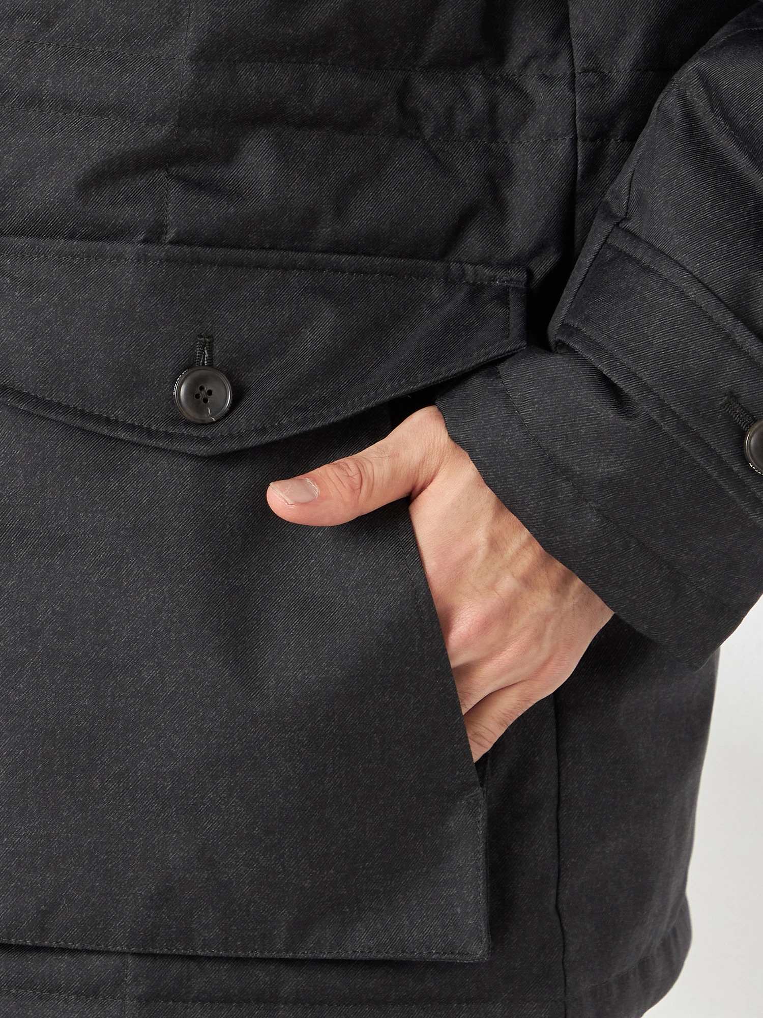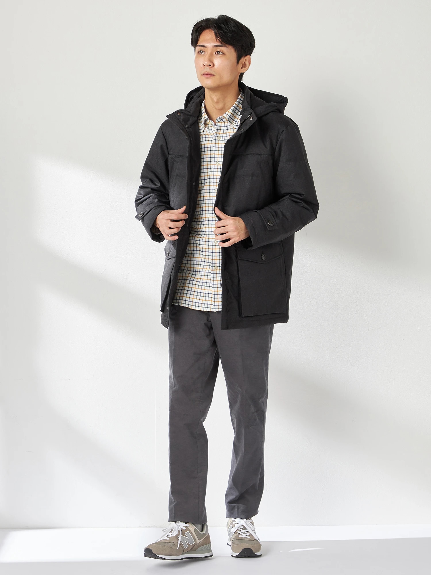 厚手のニットとの合わせや、ジャケットオンも可能な着丈になっています。冬の都会で過ごす大人の着こなしをお楽しみいただけます。