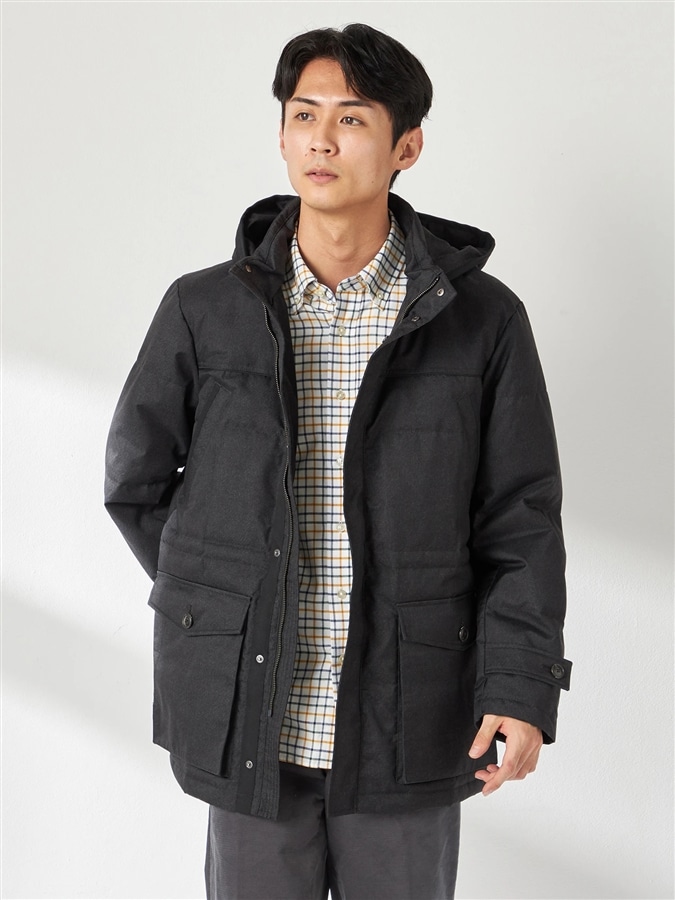 素材:表地 ポリエステル 100% (裏側ポリウレタン・ラミネート) 裏地 ポリエステル 100% 中袋地 ポリエステル 100% 中わた ダウン 80% フェザー 20%