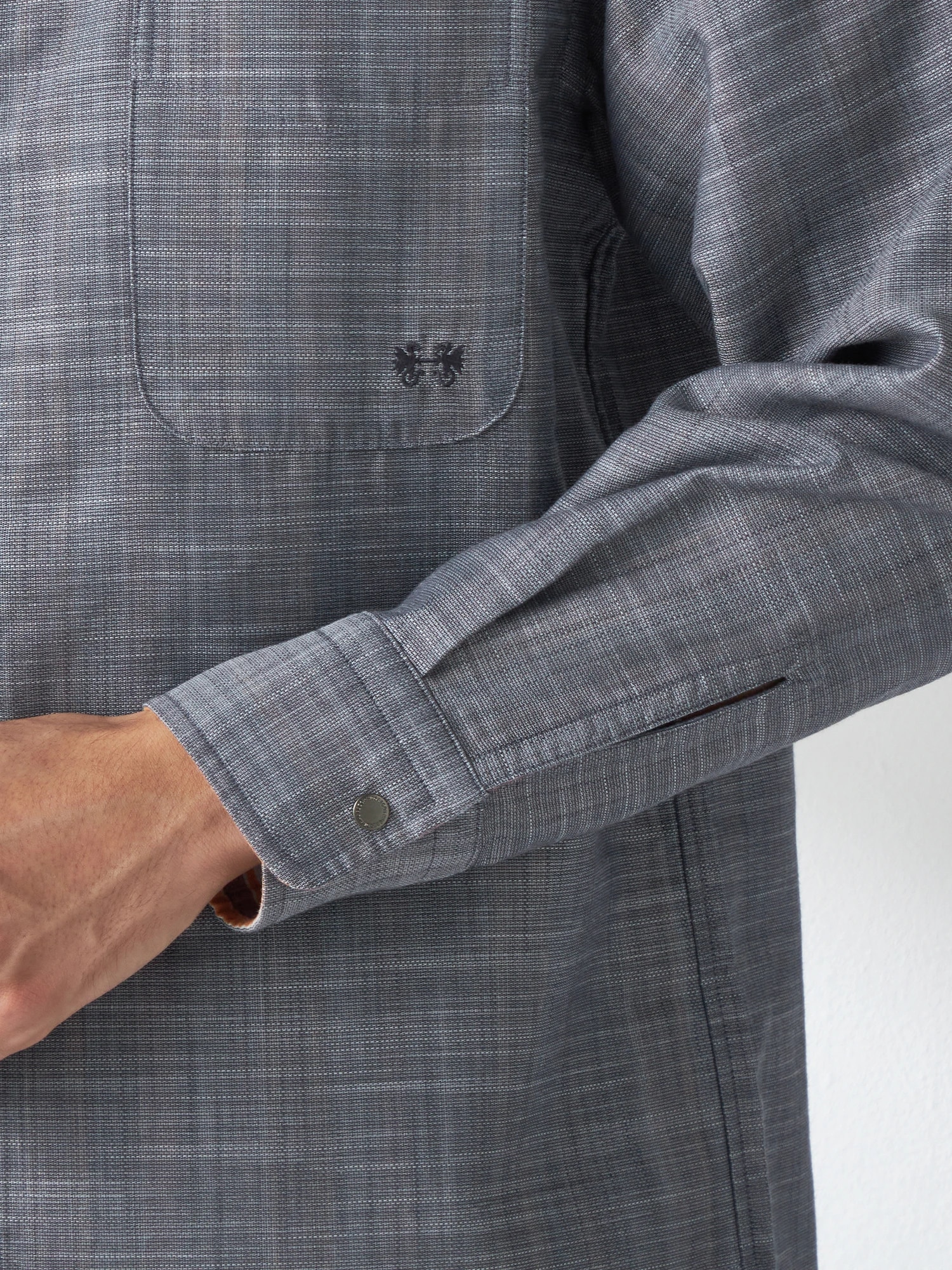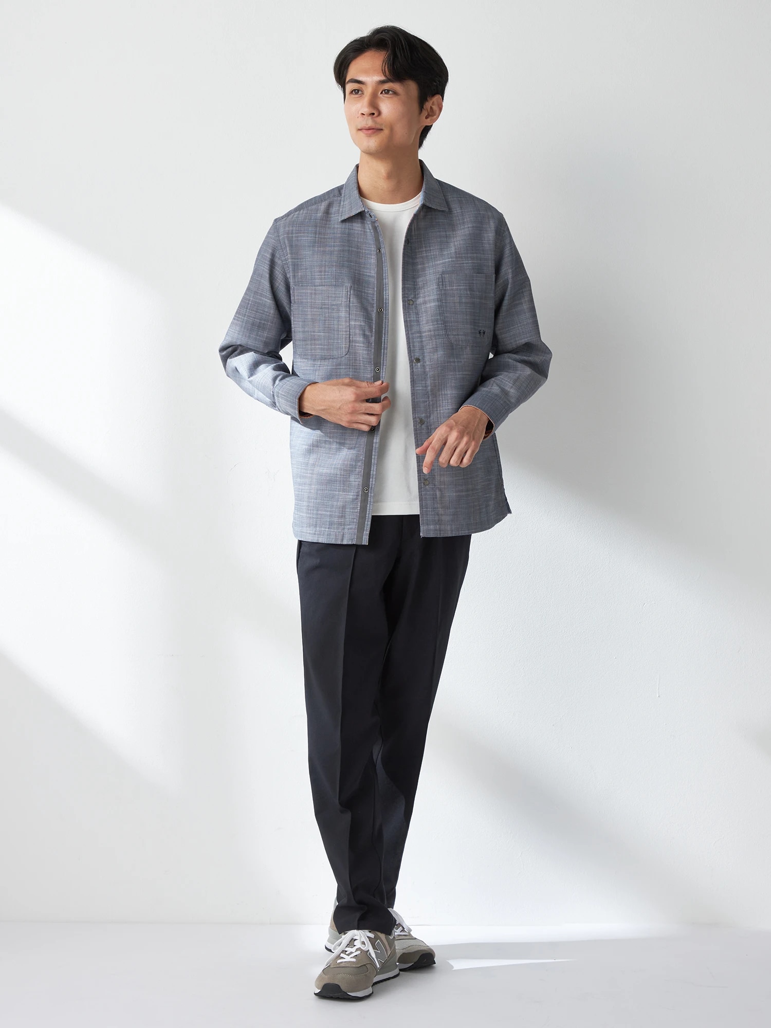 ■素材ドビー組織の表情のある無地面と、多色使いチェックの両面使いが可能な素材です。