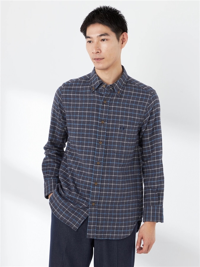 素材の魅力が際立つ起毛チェックシャツ■デザイン深みのある色合いで表現したチェック柄は落ち着いた表情で柔らかい風合いです。■素材異なる色の糸を、1本の糸に撚り合わせて配色した、三つ杢の糸を使用し、ウールのような表情と膨らみのある素材感が魅力です。■コーディネート温かみのある素材感はウール素材やセーターと相性が良く、冬場のコーディネートのアクセントになります。