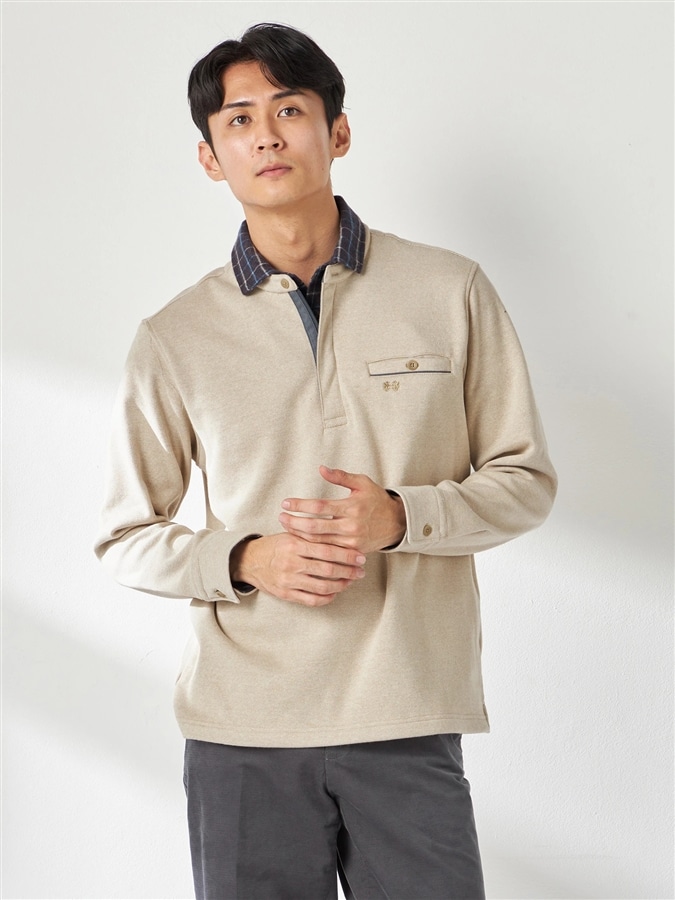 シャツ選びに悩まない一枚で決まるカットソー■デザインバーズアイジャガードで深味のある生地に杢糸使いのシャツをコンビネーションし、シャツの重ね着をしているようなデザインです。■素材異色鹿の子ジャガードの裏面にボアを配したソフトで暖かいオリジナル生地です。■コーディネート室内では一枚着として、外出の際はカジュアルアウターやコートのインナーとして着用するのもおすすめです。