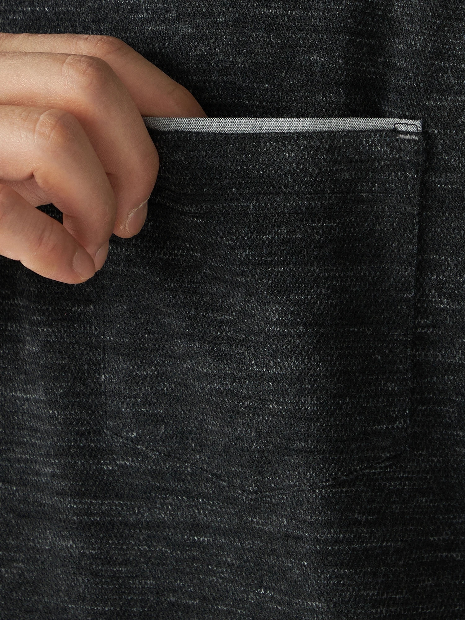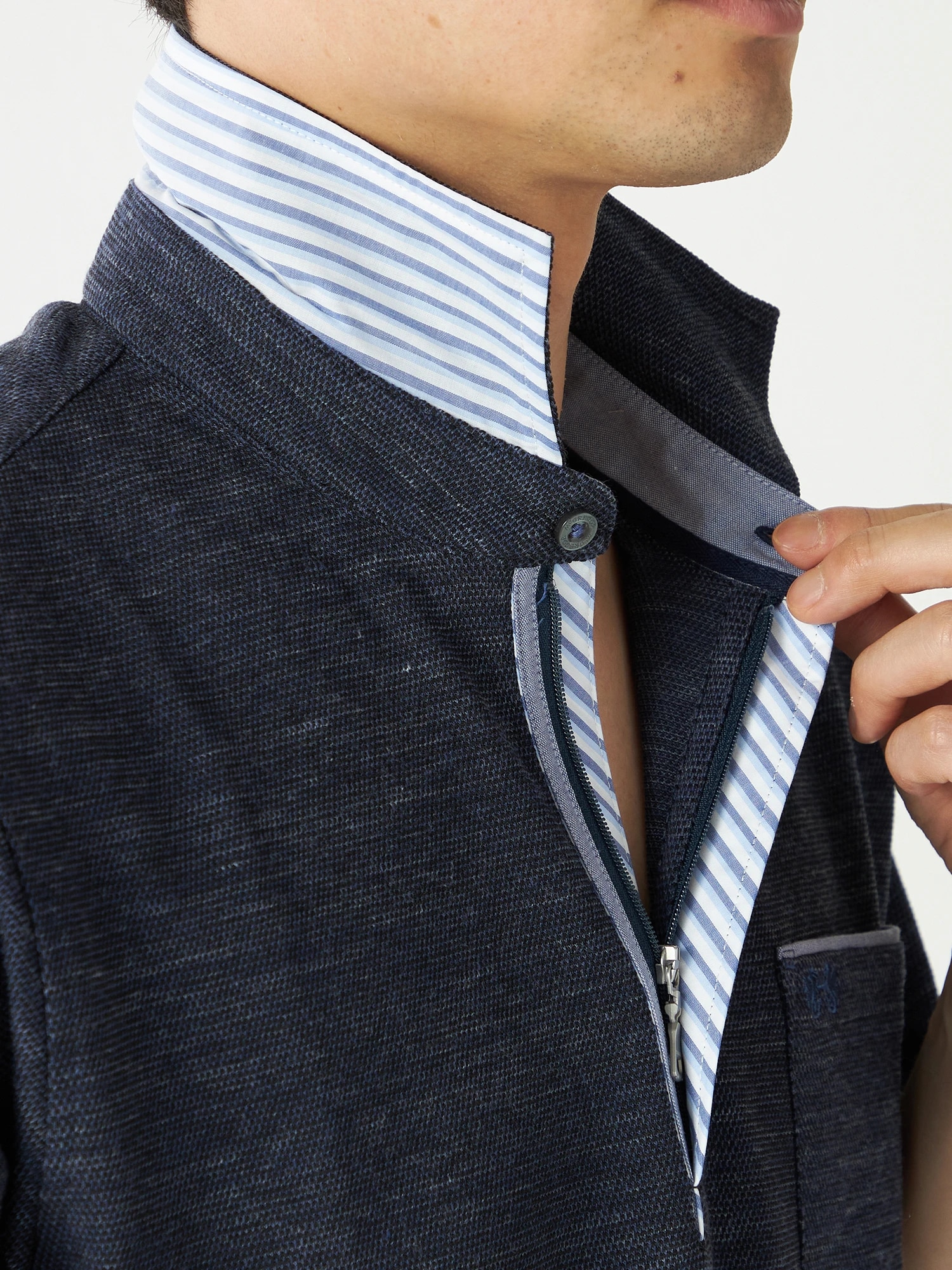■デザイン 襟裏や袖裏に配したシャツ生地はさり気ない拘りを感じさせるポイント。ポケット口や裾スリットのカン止めにも色糸を使用しデザインポイントに。