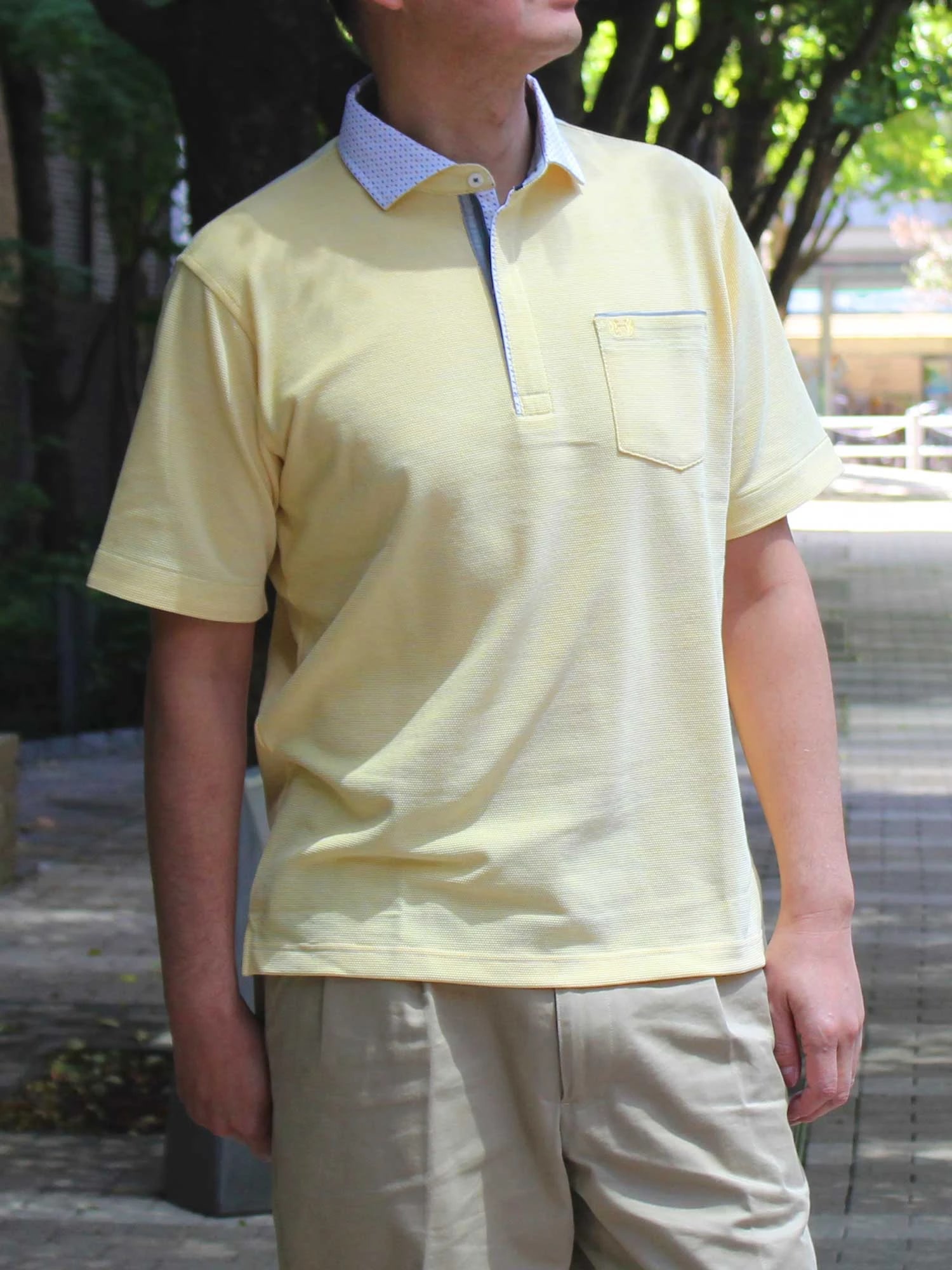 ■素材 ポリエステルと綿の糸を使用し表面感のある見た目と、薄手でサラッとした肌触りに拘った生地は夏にぴったり。吸水速乾・UVカット・抗菌防臭の機能がついた【Mc CARE】素材です。 見た目と着心地はもちろん機能にも拘った清涼感のあるおすすめポロシャツです。