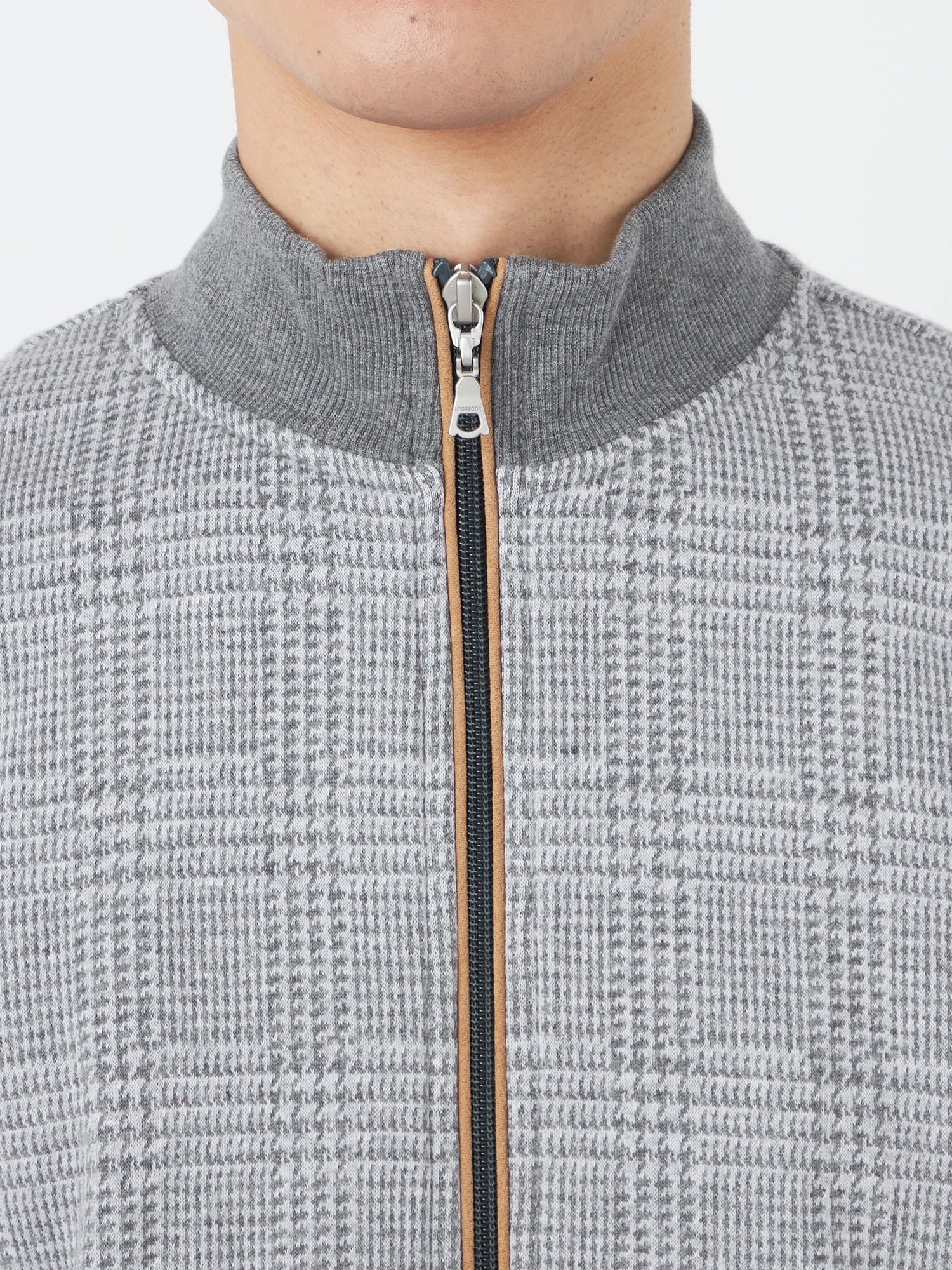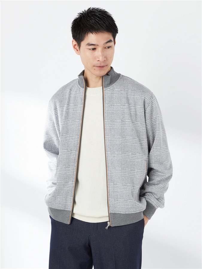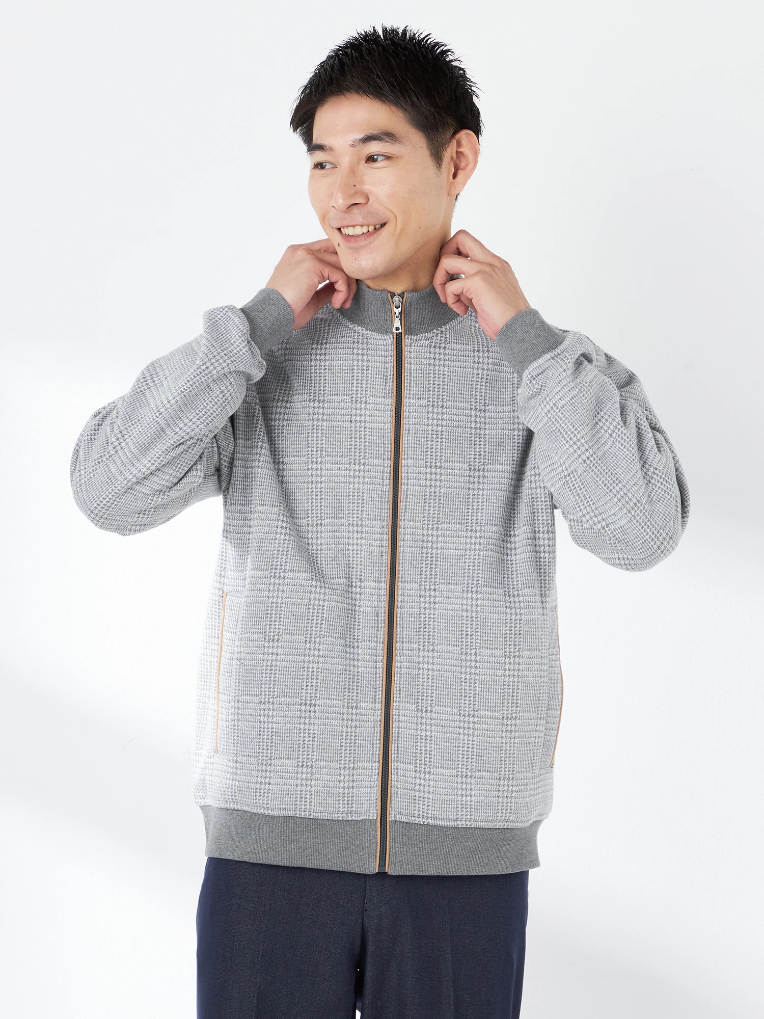 グレンチェック柄が上品なニットフリースブルゾン■デザイングレンチェック柄の上品なブルゾンです。シンプルな中にもスエードを使用したポケット口や襟裏テープがさりげなくポイントになっています。■素材濃淡2色の糸を使用したジャガード柄。裏面にボアを配したソフトで温かい生地です。■コーディネートカットソーの上から羽織ったり、シャツの上に重ねて着たり、ジップをきちんと締めてアウターやコートのインナーとしても活躍します。