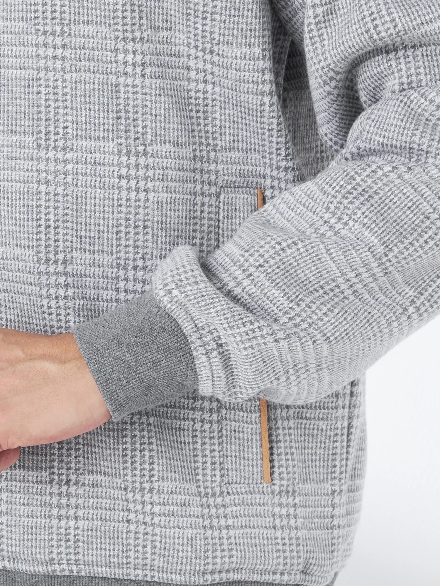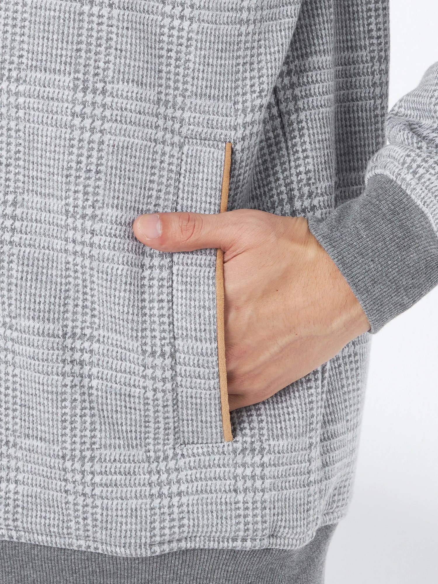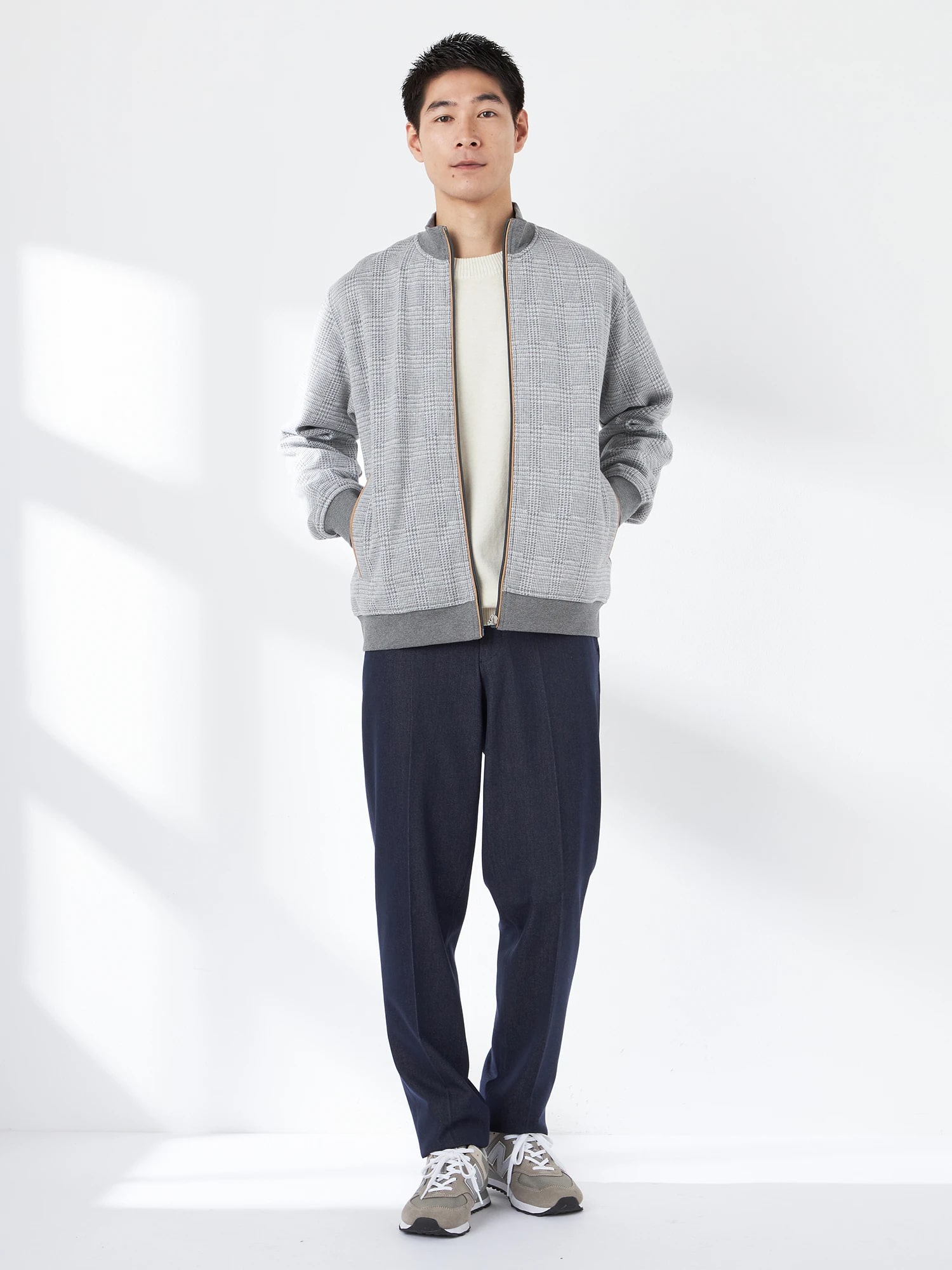 グレンチェック柄が上品なニットフリースブルゾン■デザイングレンチェック柄の上品なブルゾンです。シンプルな中にもスエードを使用したポケット口や襟裏テープがさりげなくポイントになっています。■素材濃淡2色の糸を使用したジャガード柄。裏面にボアを配したソフトで温かい生地です。■コーディネートカットソーの上から羽織ったり、シャツの上に重ねて着たり、ジップをきちんと締めてアウターやコートのインナーとしても活躍します。
