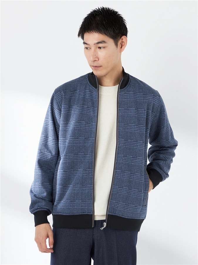 グレンチェック柄が上品なニットフリースブルゾン■デザイングレンチェック柄の上品なブルゾンです。シンプルな中にもスエードを使用したポケット口や襟裏テープがさりげなくポイントになっています。■素材濃淡2色の糸を使用したジャガード柄。裏面にボアを配したソフトで温かい生地です。■コーディネートカットソーの上から羽織ったり、シャツの上に重ねて着たり、ジップをきちんと締めてアウターやコートのインナーとしても活躍します。