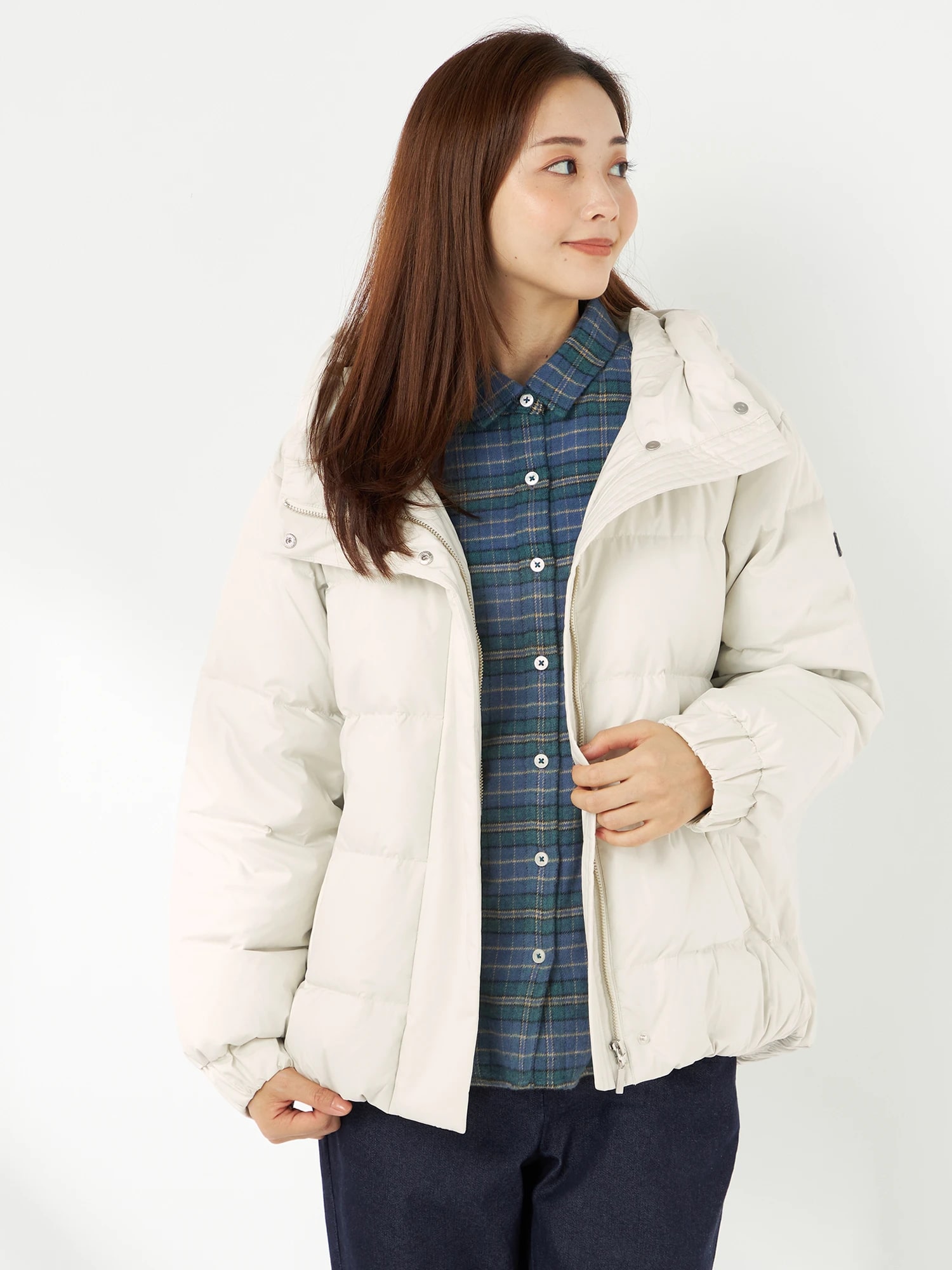 ■素材しなやかでマットな風合いの薄手ポリエステル素材で、撥水加工を施しています。ダウン90%フェザー10%を使用し、軽量ながらしっかり膨らみがあります。