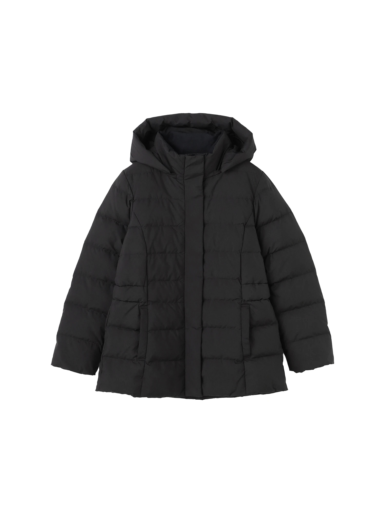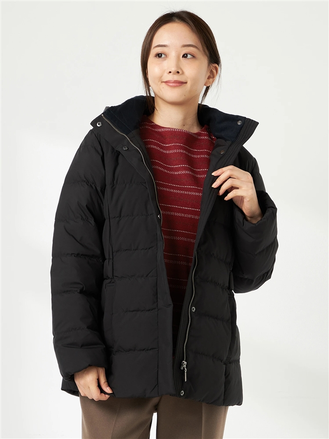 【撥水加工】ショートレングススポーティダウン■デザインウエストにアクセントのあるスポーティな印象のダウンです。フード脱着可能な2way仕様です。■素材しなやかで上品なマット感のあるポリエステル素材で、撥水効果を施しています。■コーディネート女性らしさも保ちながら、羽織るだけで軽快な印象を与えます。スポーティながらも大人きれい目アクティブスタイルもお楽しみいただける一着です。