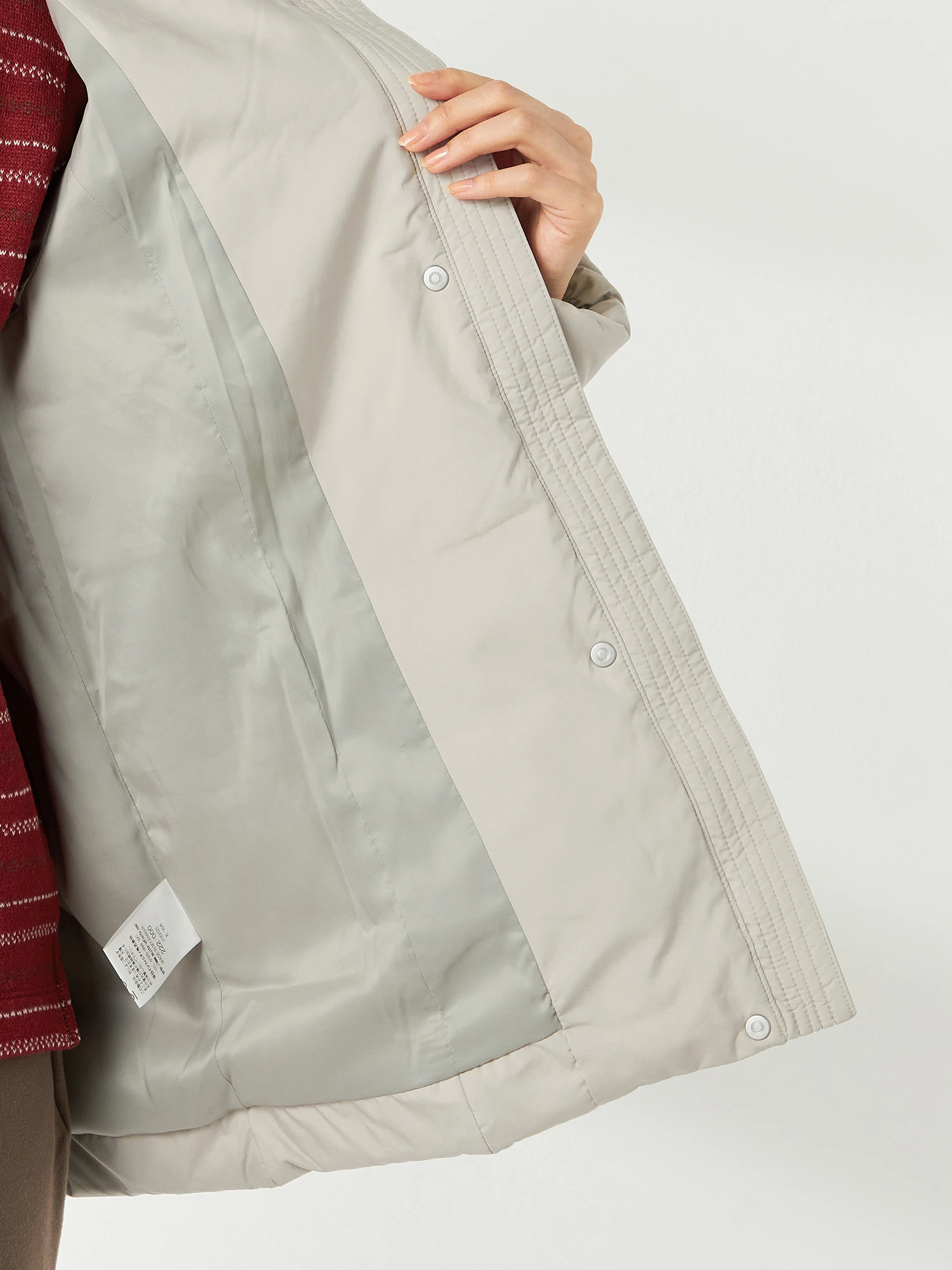 素材:表地 ポリエステル 100% 別布部分 ポリエステル 100% 裏地 ポリエステル 100% 中袋布 ポリエステル 100% 中わた ダウン 80% フェザー 20%