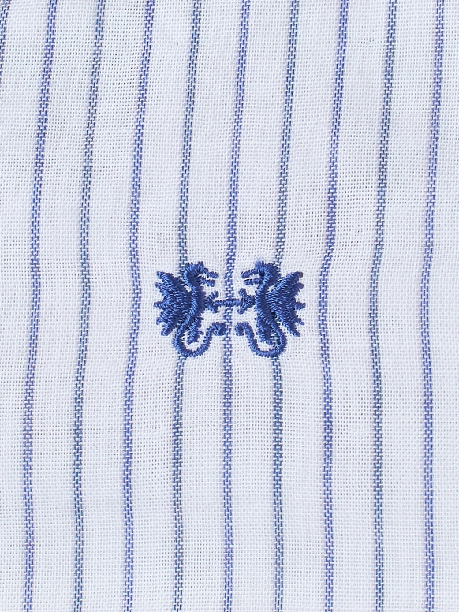■デザインAラインシルエット気味のレギュラーシャツで、ボタン付け糸の配色アクセントがポイントです。