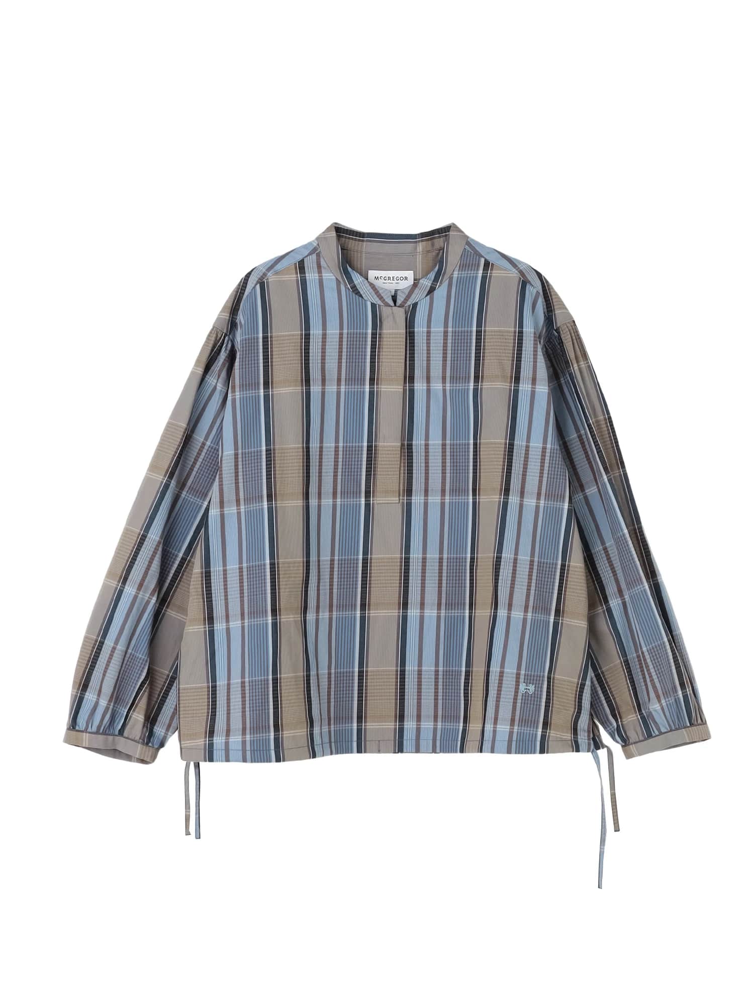 ■素材細番手・高密度のコットンチェック素材は、ハイクオリティでしなやかな肌ざわりが魅力です。マルチカラーが織りなすチェック柄で、秋ムード漂うアイテム。一味違った洗練された印象のプルオーバーブラウスです。