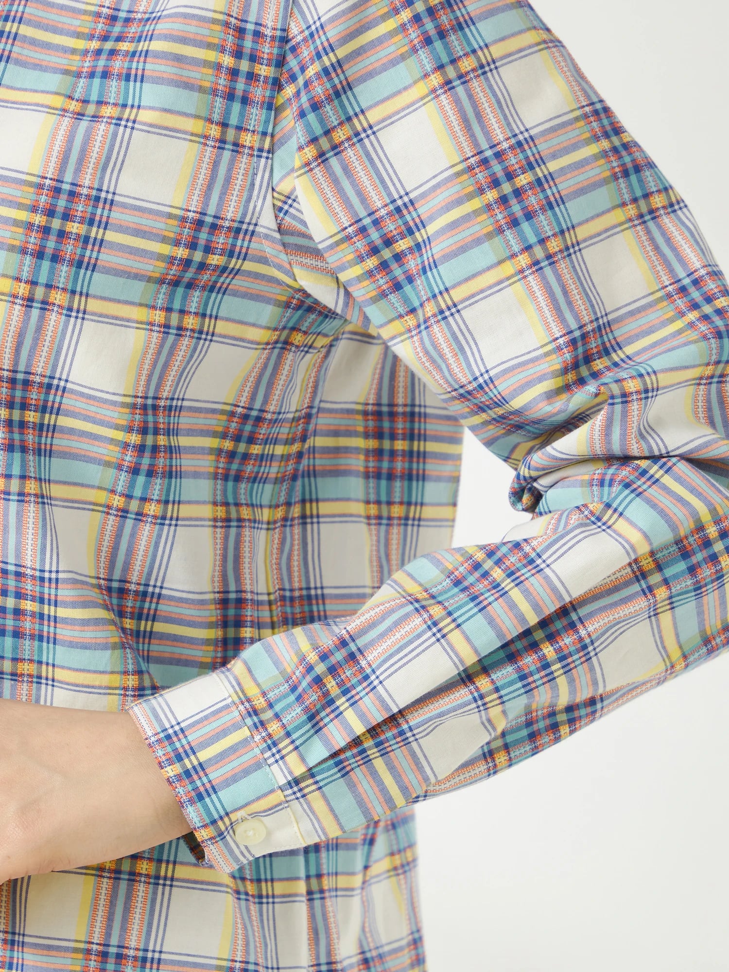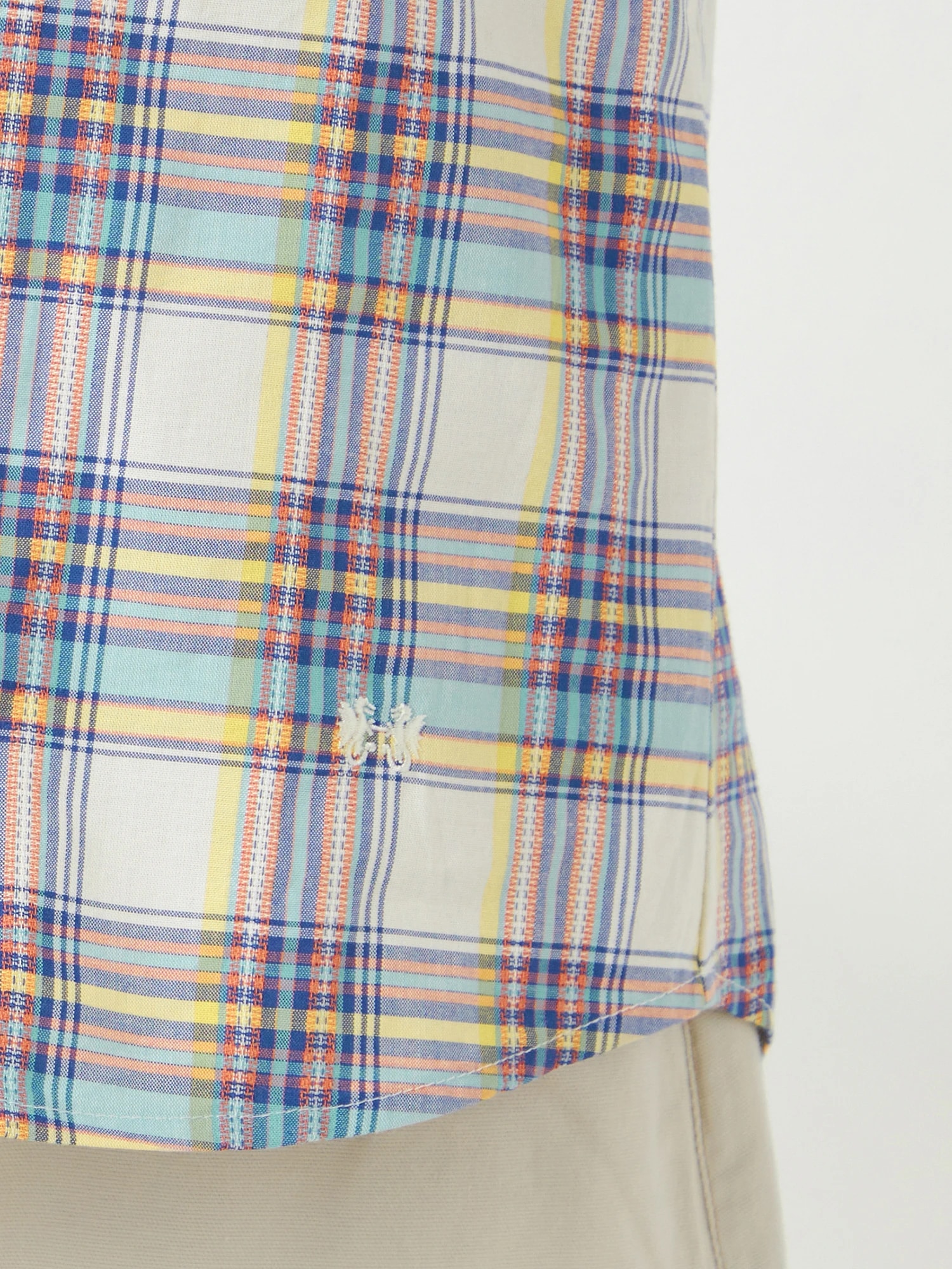 発色がきれいな、先染めチェックです。ドビー組織も交えたオリジナルチェック柄です。