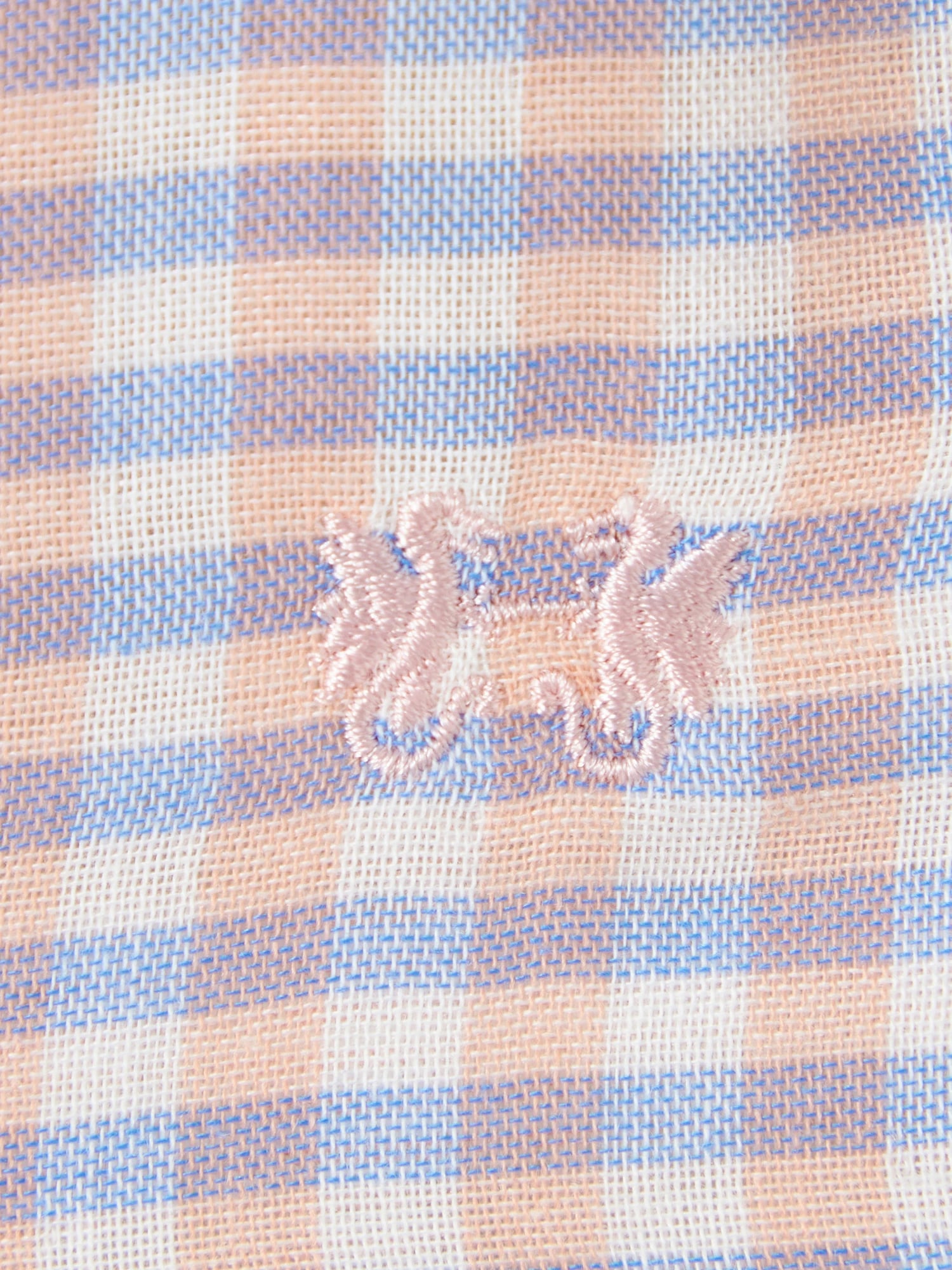 パッチワーク調チェック柄のダブルガーゼベーシックシャツ