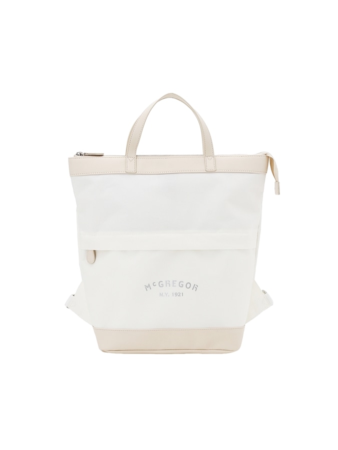 パソコンサイズの荷物も持ち運ぶことができ、仕事にもお出かけにも最適。柔らかく軽いため、使いやすさも抜群です。箔プリントが施されたロゴがキラリと光り、アクセントに。今季は帆布部分を増やし、より軽量に仕上げました。