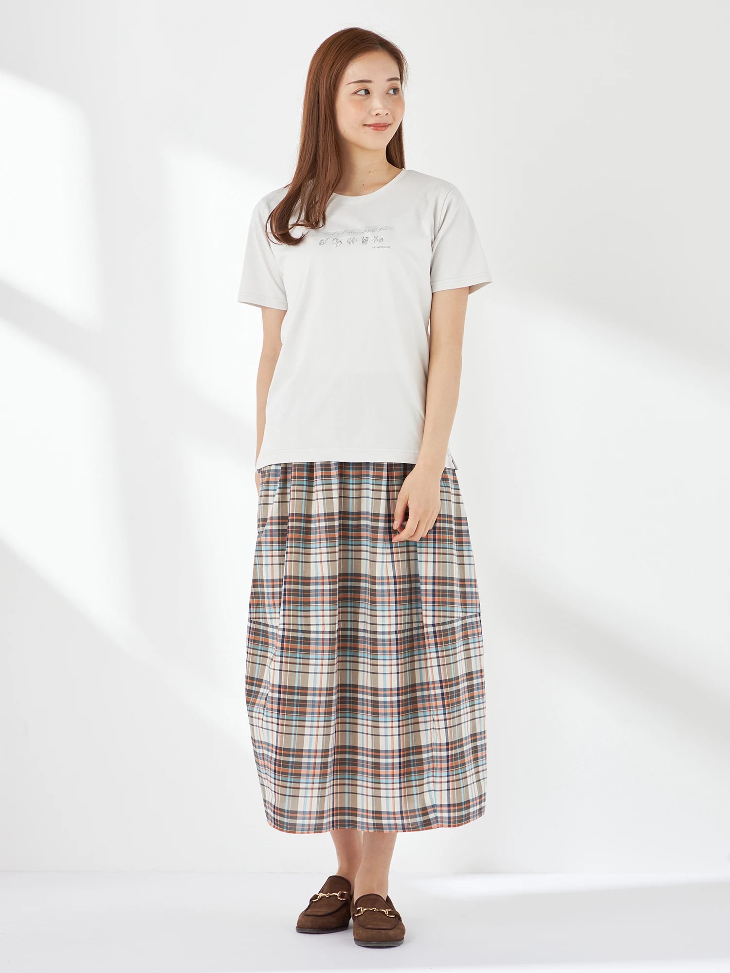 ■コーディネート 落ち着いた配色のさり気ないプリントで、キレイ目にもカジュアルにも使える一枚です。
