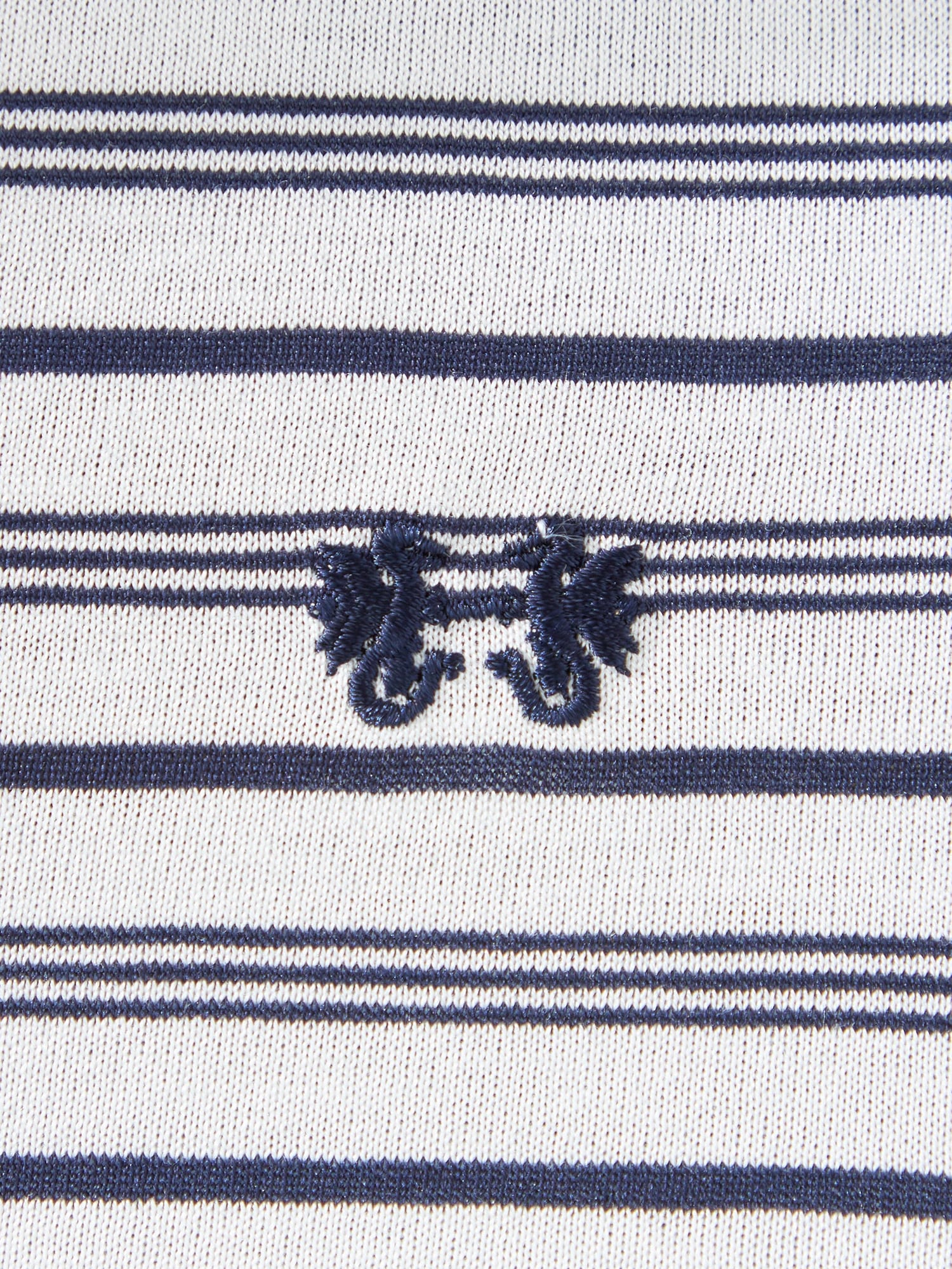 ■デザインプチハイネックとラウンドさせた前裾、閂止めや刺繍の配色がポイントのゆったりとしたシルエットのTシャツです。
