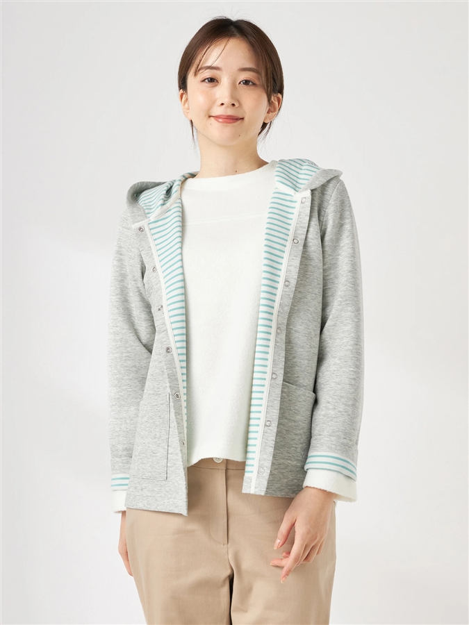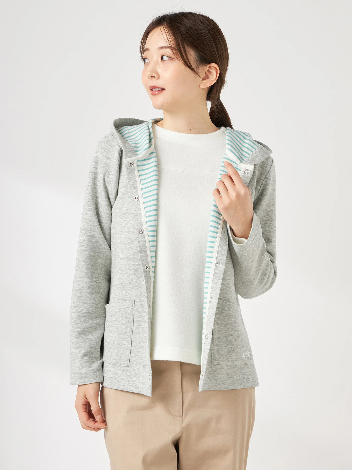 裏ボーダーのフロントドットパーカー■デザイン形はベーシックながら、ポケットのオリジナル刺繍やボーダーに合わせた閂カラーなど、小さなこだわりの詰まった一着です。■素材シルケットバイオ加工が触り心地の良い、裏面ボーダーのダンボール素材です。きれい目な見え感と肌離れの良さを両立する軽量素材です。■コーディネート