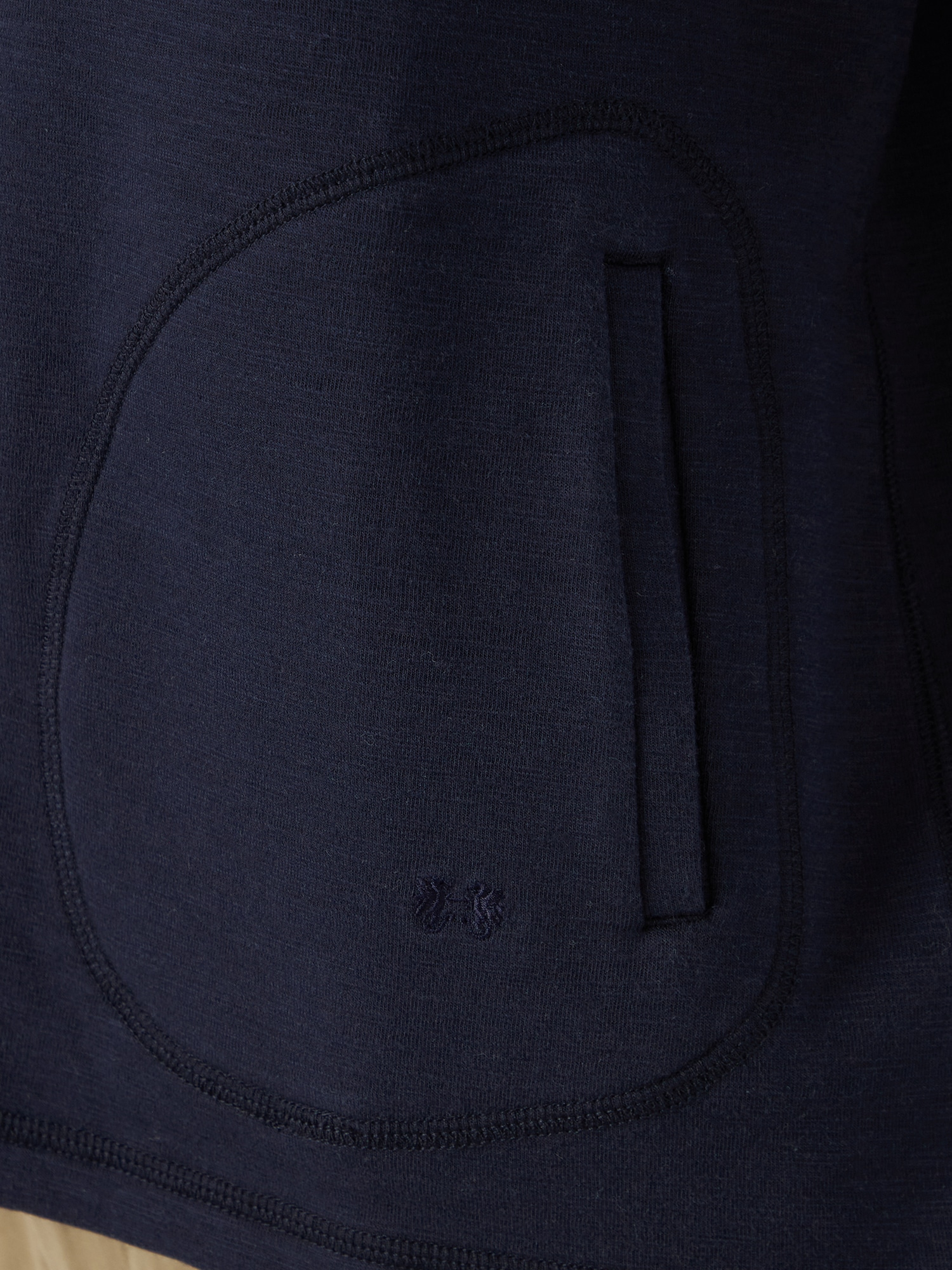 ふくらみ感のあるW組織のジャージ素材で、裏面がボーダーになっています。無地でも表面感があるので1枚着としても着映えします。