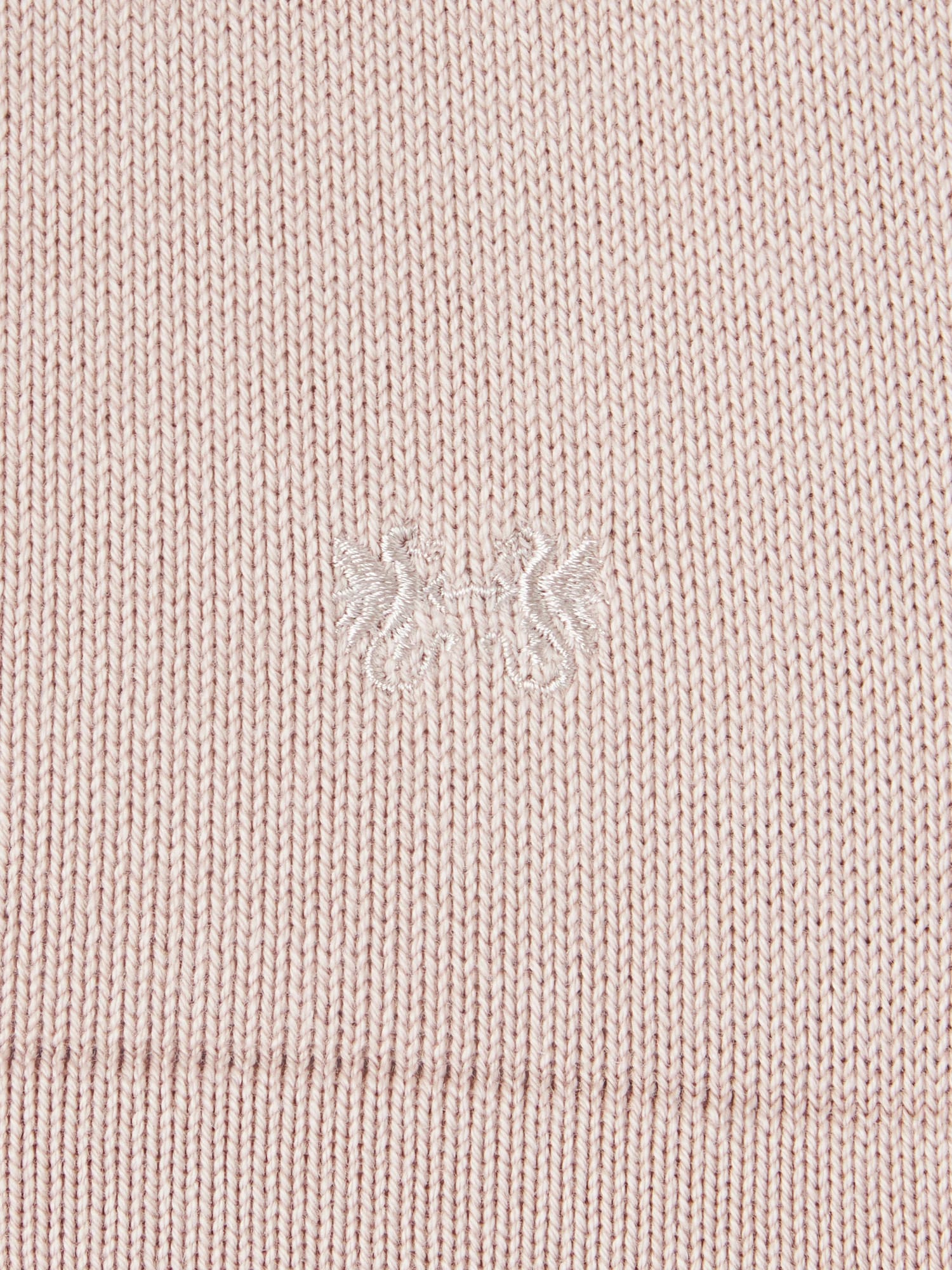 ■素材コットン糸にポリエステル糸をプレーティングした、ほどよいハリと整った目面が特徴の編地です。