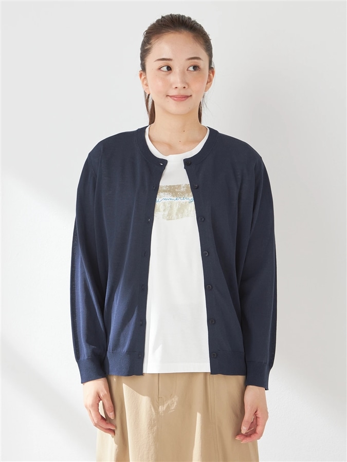 ■デザインクルーネックのベーシックなシルエットのニットカーディガンです。テーマのマリンテイストを表現したボーダー柄もご用意しています。