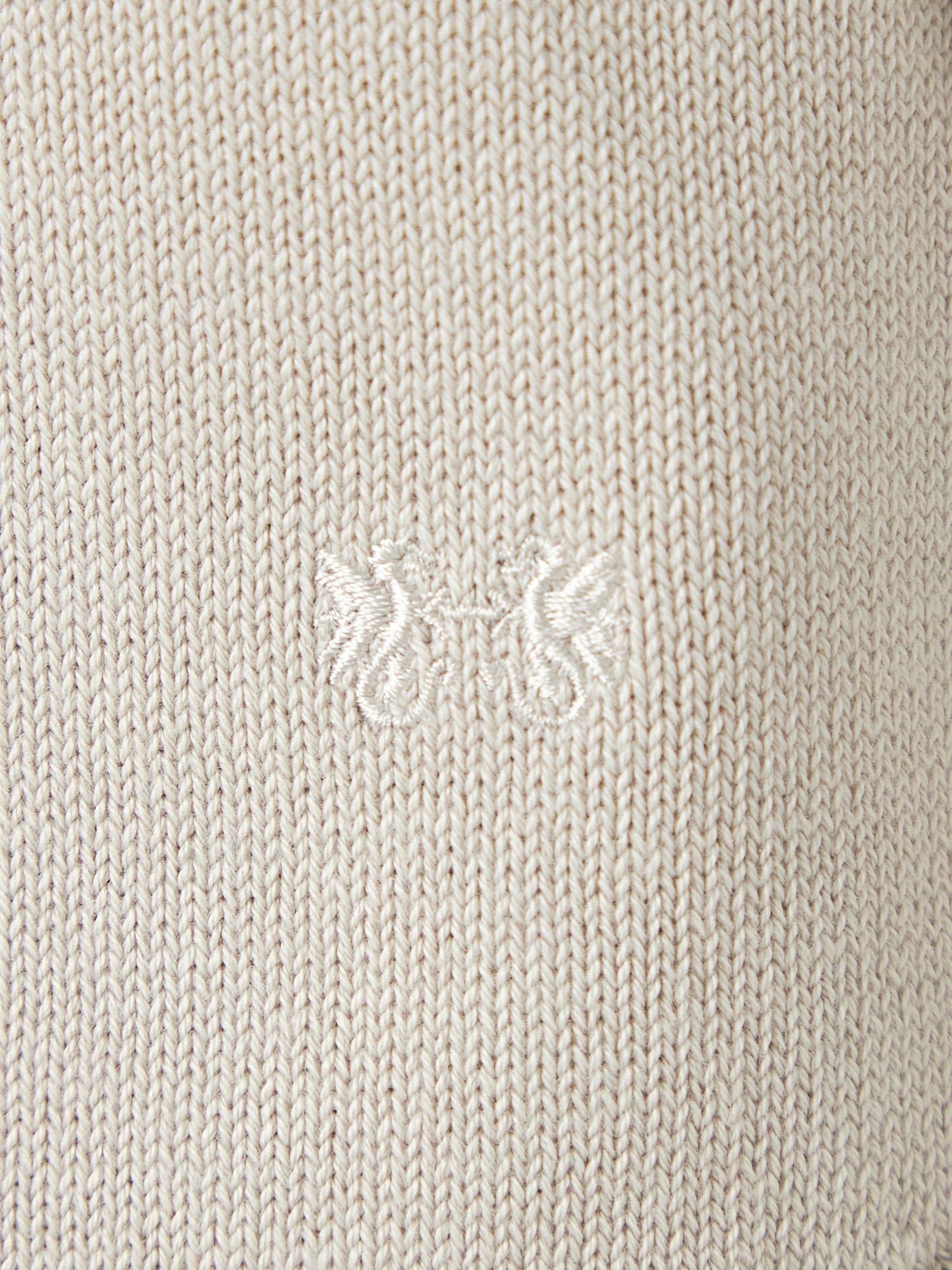 表面にコットン、裏にポリエステル糸を使用した2重構造の編地で、きれいなシルエットが出るしっかりした素材です。