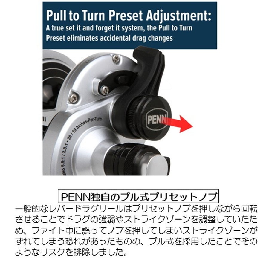 レバードラグ搭載モデル!ハイギアとローギアをワンプッシュで変更可能!プル式プリセットノブ採用!