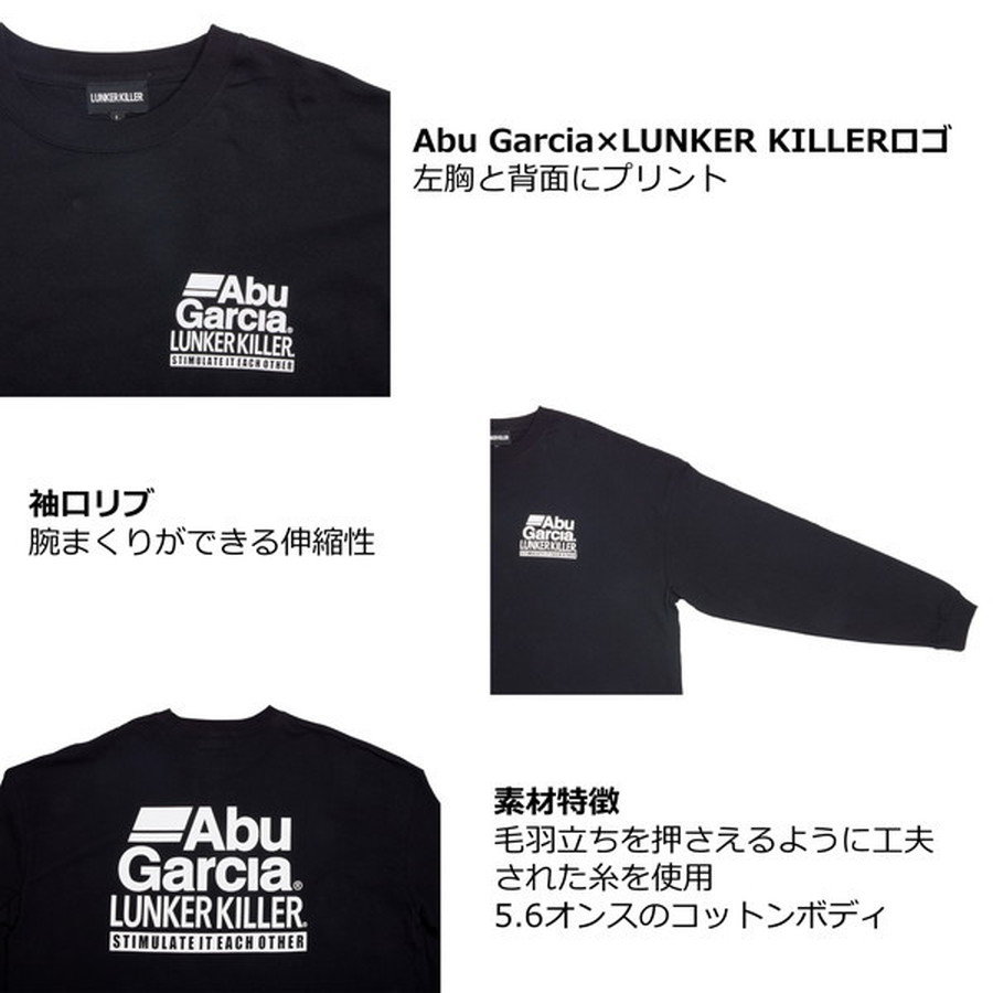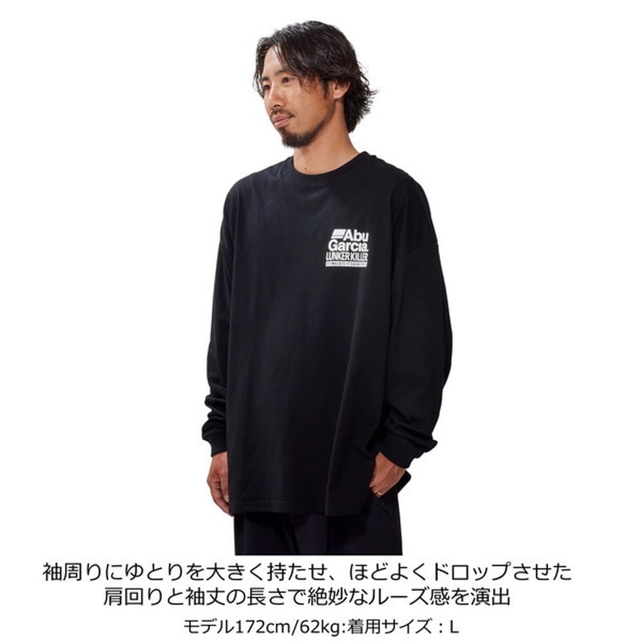釣りのシーンをカッコ良く、アメカジや古着をモチーフにタウンユースでもBass Fishingを感じられるアイテムをリリースする『LUNKER KILLER』と『Abu Garcia』のコラボレーションコレクション。袖周りにゆとりを大きく持たせ、ほどよくドロップさせた肩回りと袖丈の長さで絶妙なルーズ感を演出。身丈や身幅もゆったりながらまとまりあるシルエット。毛羽立ちを押さえるように工夫された糸を使用した5.6オンスのコットンボディ。Abu GarciaとLUNKER KILLERのロゴを左胸と背面にプリント。