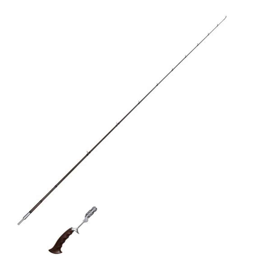 アルミマシンカットオフセットリールシート採用の木製ガングリップロッド!バスのトップウォータープラッキングで活躍する、5ft9inchのML、ルアーを乗せて投げやすいスローテーパーのグラスコンポジットモデル。ブランクカラーはブラウン。