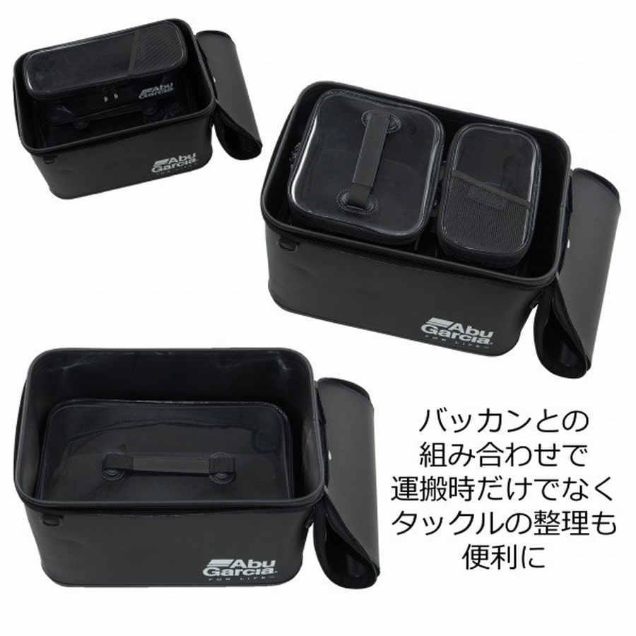 水を弾き、汚れが落としやすいEVA素材のタックルボックス。ルアーやライン、ツールといった、小物類の収納に便利。透明なフタを採用して、開けなくても内容物が見やすい。ボディにはDリングを付属して、カラビナなどのツールを取りつけられる。 別売りのバッカンなどと組み合わせることでシステム収納が可能。サイズは、S、M、L、Longの4ラインナップ。