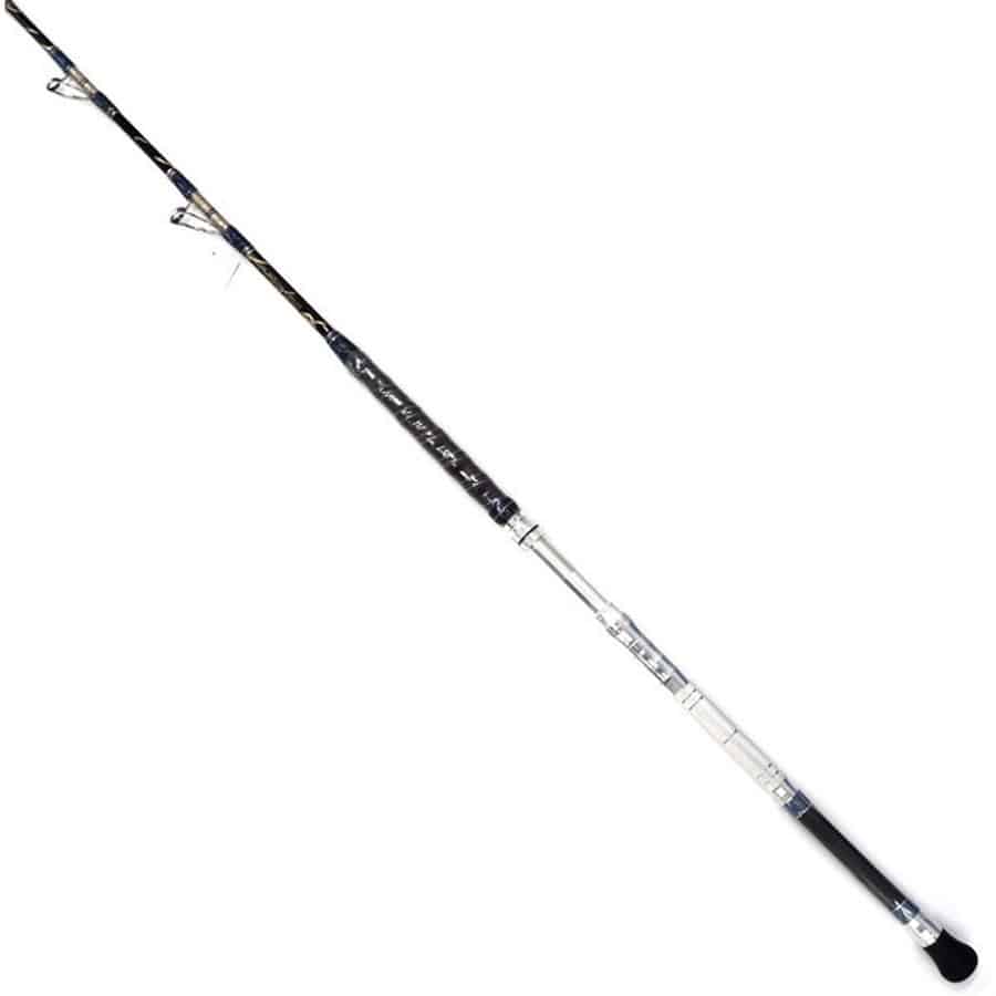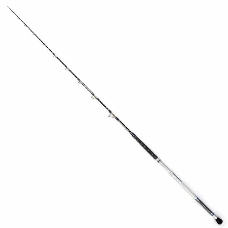 Mは主にヤリイカのブランコ向き。設計開発、素材、成形、仕上げ、品質管理まで一貫したメイドインジャパンクオリティー。ブランクには培われた経験とフィールドテストを重ね、開発されたオリジナルの国産ムク材を採用。単なるグラスソリッドとは違いハリ、コシ、タメの絶妙なバランスを生む剛性素材です。数値上の限界を超えるファイトでも体への負担を軽減し高いパフォーマンスを生むGローリングシステム。潮の早いポイントや、太いハリス、重いウェイトにも耐えあらゆる環境下でも安定した釣りを可能にします。