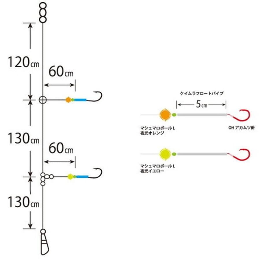 進化が止まらない!釣れるアカムツ仕掛。●人気急上昇!OH赤ムツ針でエサを選ばず、安心してやり取りが出来る。●アカムツ必須アイテムのマシュマロボール+フロートパイプでアピール抜群!●枝間・捨て糸の長さを見直し、更なる高みを目指したまさに「釣れる仕掛」の進化形。