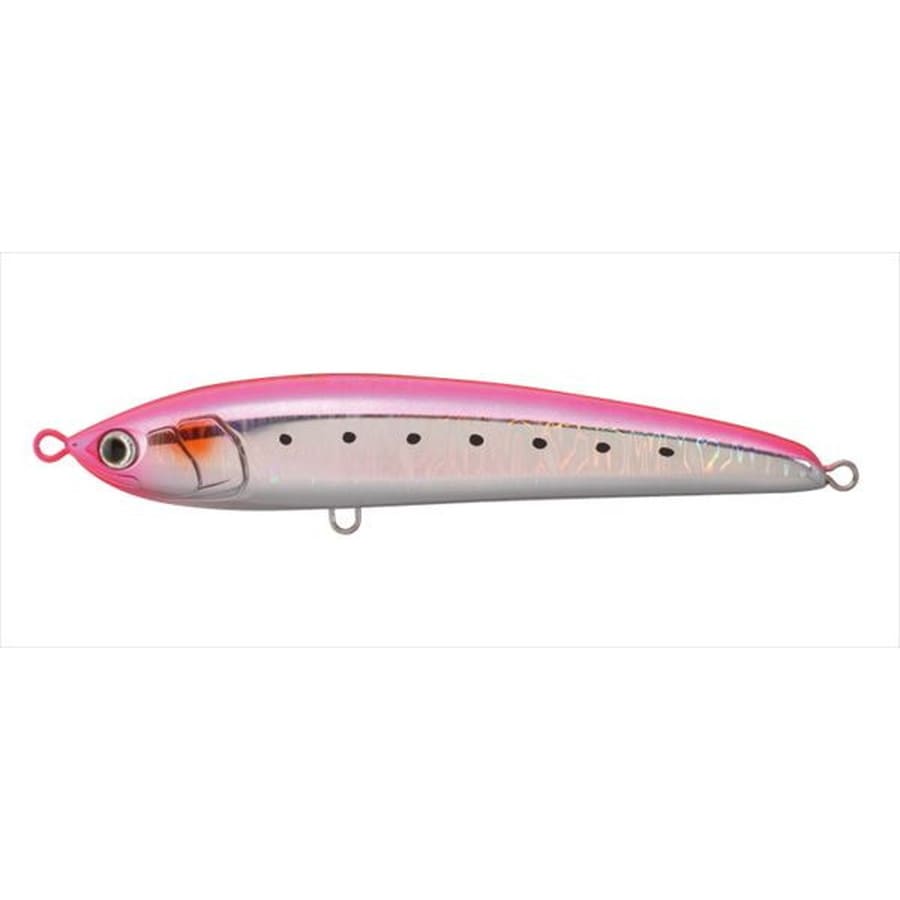 視認性が高い蛍光ピンクを配色し、薄暗く視界がぼやける朝タマズメ時に有効。見切られる前に喰わす!高速リトリーブ対応ペンシル「レガート」。マグネット重心移動によりキャスト時は「カチーン!」とリア重心となり、安定した飛距離で広範囲をサーチ。着水後はセンター重心に戻り、水平に近いスイム姿勢は高速リトリーブに対応し、トビウオやサンマなどの水面で動きが速いベイトを捕食しているときや、日中・ベタ凪時の警戒心が高まるタイミングに有効。