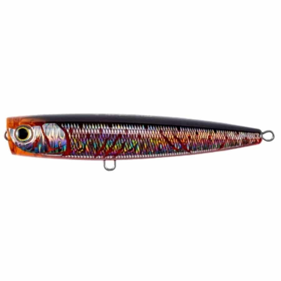青物の本能を刺激する泡音 (ポップ音)!ソルト用ポッパーのパイオニア。離れたターゲットに存在を知らしめる300~1,000Hzの泡音(ポップ音)。砲弾ボディによるクラス最高の遠投力(平均85m)。ダイビングペンシルがエラーしやすい荒天下&高足場でも操作できる。【002 血みどろ】ホログラムのフラッシング効果によるアピール要素と、見切られ難い透過性(クリア)を併せ持つ「透過フラッシング」カラー。捕食者に追われ弱って血のにじんだベイトをイミテートし、低活性な日中や晴れ間に効果的。