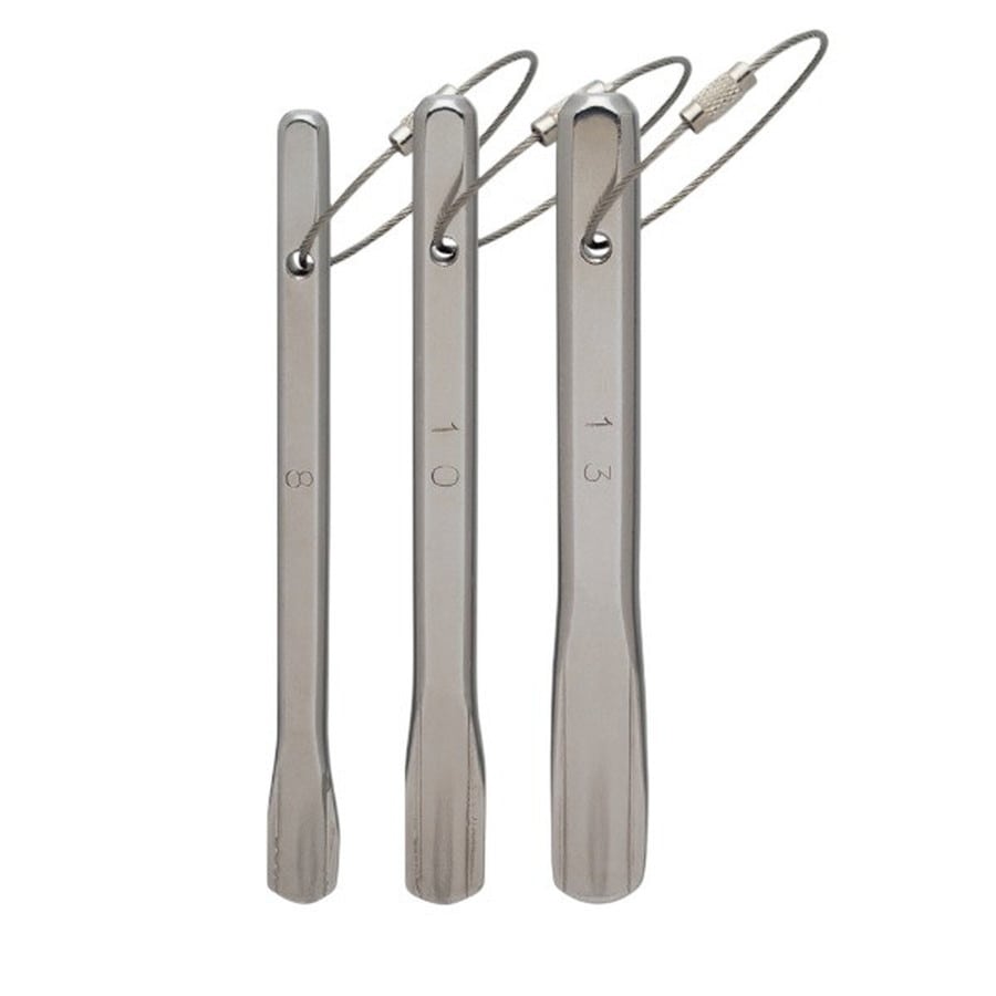 竿受用ピトンを岩に打ち込んでも隙間が大きく、ピトンが固定しにくい場所に使います。ハーケンの先をV型にすることでピトンに沿って打ち込むことが可能です。隙間の大きさに合わせて8、10、13mmをラインナップ。本体、ワイヤー部ともステンレス製。(ワイヤーは別売もしています)★サイズ:8mm・10mm・13mm