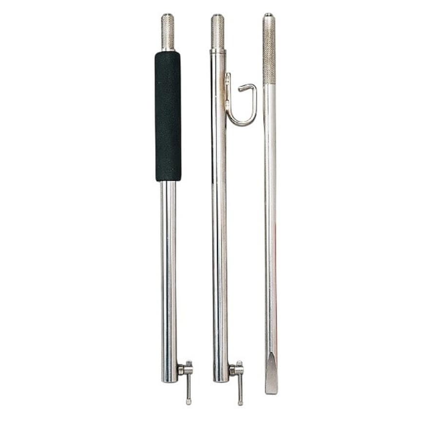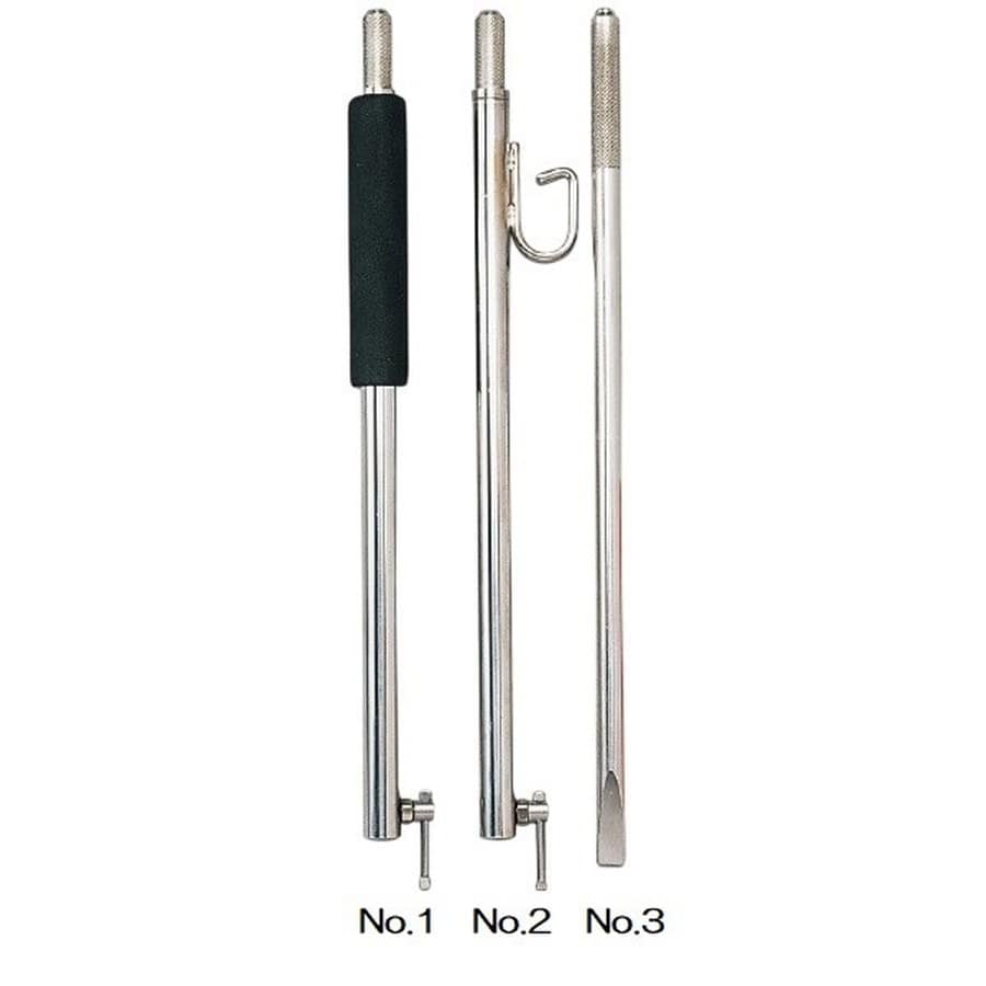 磯バッカンに収納可能。3本継ぎピトン。仕掛け針やヤエン・エギが掛けられるラバー付き、荷物掛け用のフック小物掛け付きと、3本の組み合わせで使いやすさを向上!高さ調整も自在のピトン。36cm磯バッカンに収納可能なジャストサイズで携行にも便利。磯の上物釣り、アオリイカ釣りに最適です。(トリプル竿受は別売りです。)★重量:230g(No.1)、240g(No.2)、300g(No.3)