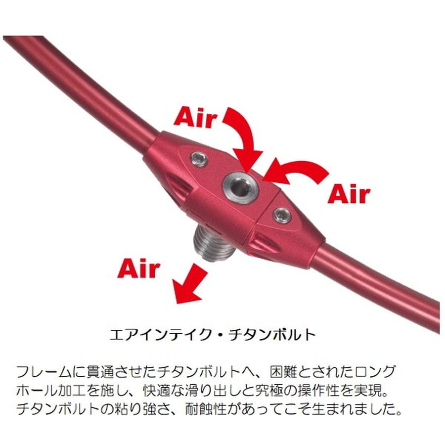 強靭で軽量 操作性抜群のウルトラフレーム極ワンピースモデル。チタンクラスの強さを持った超々ジュラルミン素材を採用した「ウルトラフレーム極」ワンピースモデル。従来の3点ジョイントをワンピース化することにより更なる強度を実現。もちろんチタンボルト部は、「エアインテイク機能」を装備し、さらにジョイントパーツが無くなることで軽量化に磨きをかけ、操作性を向上させることに成功しました。★サイズ:45cm