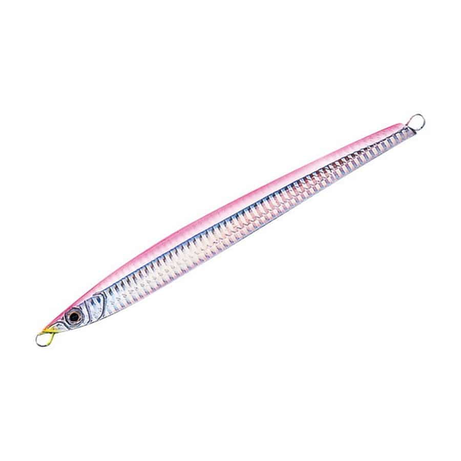 伝家の宝刀CB.マサムネは、近沿海でのジギングに焦点を当て、スロージギングのために開発したセンターバランスロングジグ。細身のロングボディーと水平志向の高アピール性を重視した結果、全ての長さを185mmで設計。水切れの良さと多彩なアクションを演出させるため、ボディーは限界まで薄くしてエッヂを効かせ、水圧を受けやすいフラット面を長く狭くとって、ショート、ミディアムストロークのスロージャークでも、タイトなアクションを可能にさせたレーザーエッヂバック&フラット形状です。