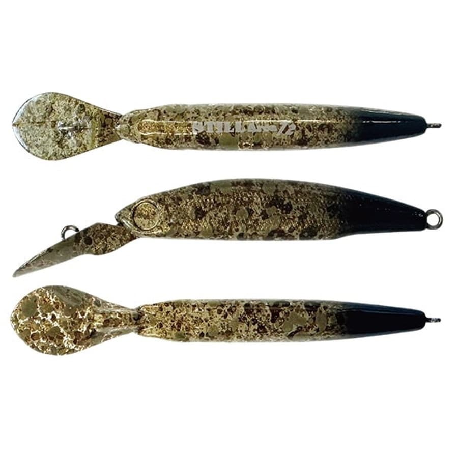 通称「マジックジャーク」キャスト後、トラウトの目線より下に素早く潜らせてルアーの存在を消す。続いてラインテンションをかけて姿勢をコントロールしながら真上に浮かせる。再び視界に飛び込んでくるスティルに魚はたまらず口を使います。サイトフィッシングが出来ないマッディポンドではトラウトのレンジを探るためにPEラインを用い、PEラインの動きでバイトを感知する。また、魚へプレッシャーを掛けづらく、水馴染みが良く伸びの少ないエステルラインもこの釣りでは有効です。