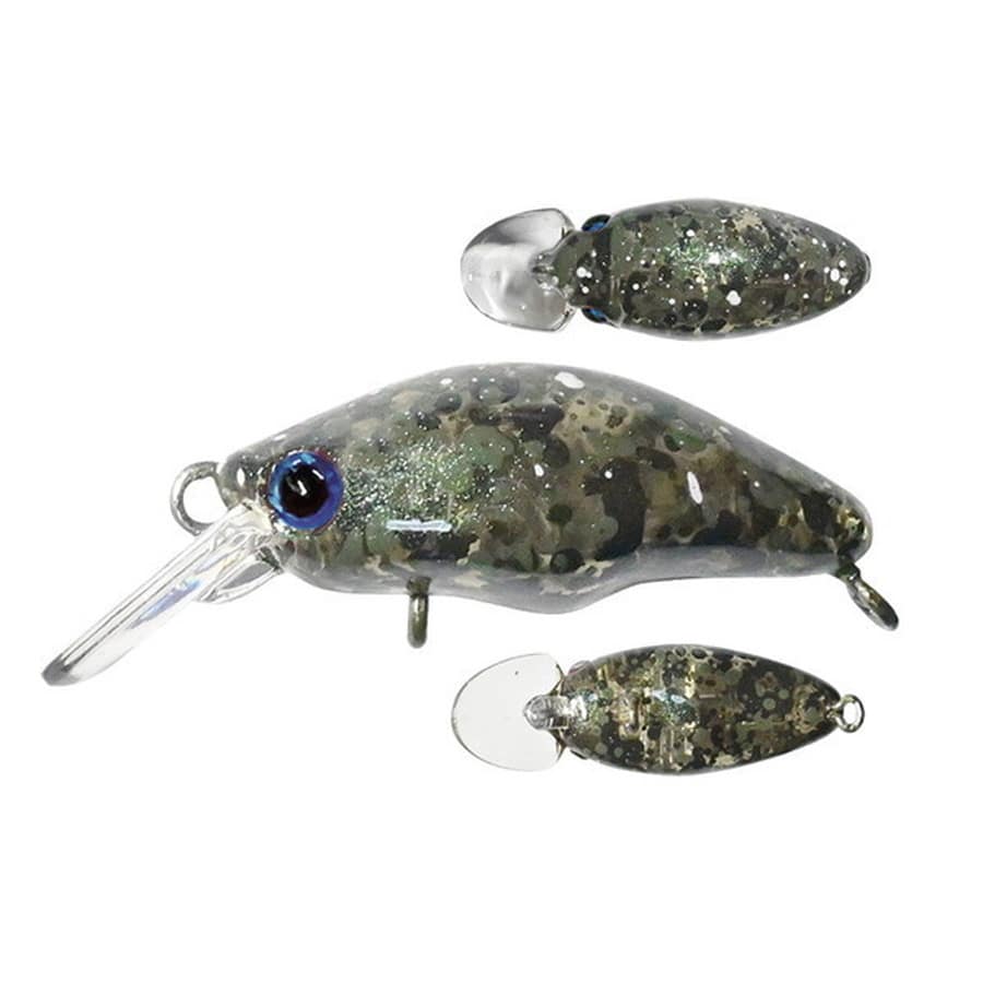 モチーフは草や泡。やる気・体力の少ないトラウトに対して同目線で「つまみ食い」させる『水中浮遊系』マイクロクランクこのダンゴウオに求めたのは、水中に漂う草の切れ端や泡と同じように自然界に溶け込む『水中同化がしやすいもの』であること。 こちらからそっとルアーを近づかせ、魚の目の前で気付かせ反応させる。逆に遠くにいる魚は気付かせないでおく、という発想です。 目の前に来て初めて喰い気を働かせ、移動距離を必要とせず安心して何度もその場でパクパクとくわえるイメージです。 それを再現しやすいものが無く、何とかそれを形にできないか●。そんな興味心からダンゴウオは生まれました。魚の目の前に来やすいモデルを選んで、ゆっくり、そしてそっと巻いてみてください。