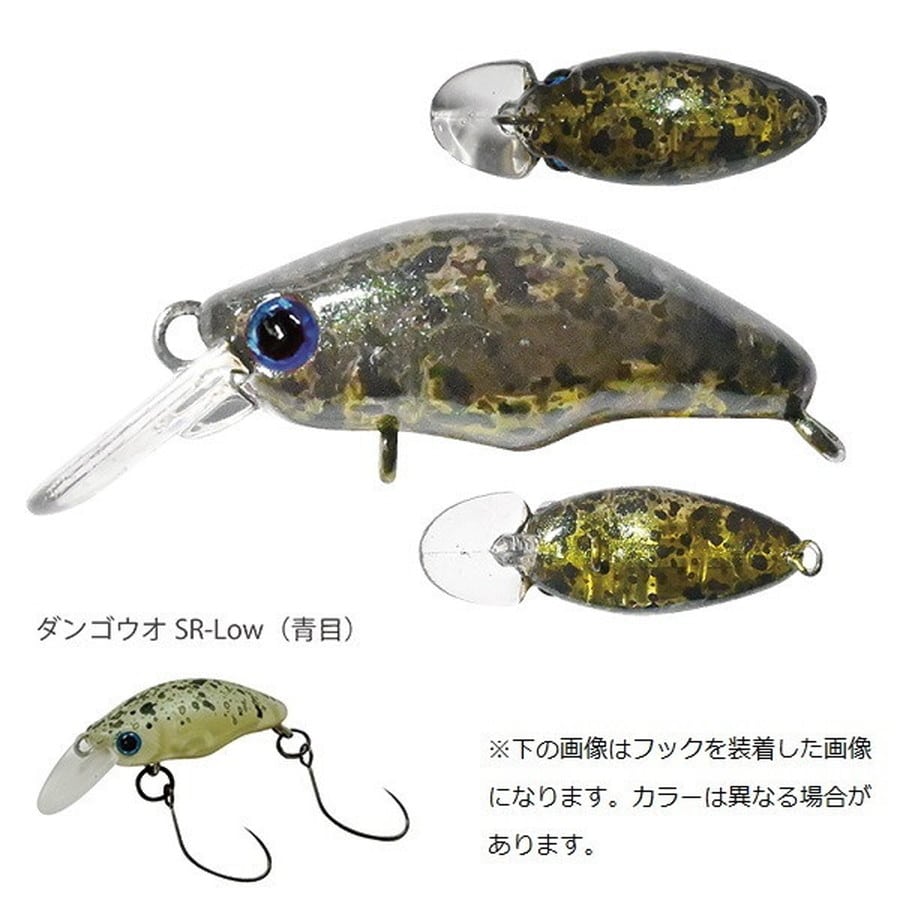 モチーフは草や泡。やる気・体力の少ないトラウトに対して同目線で「つまみ食い」させる『水中浮遊系』マイクロクランク。団子魚(ダンゴウオ)。このダンゴウオに求めたのは、水中に漂う草の切れ端や泡と同じように自然界に溶け込む『水中同化がしやすいもの』であること。 こちらからそっとルアーを近づかせ、魚の目の前で気付かせ反応させる。逆に遠くにいる魚は気付かせないでおく、という発想です。 目の前に来て初めて喰い気を働かせ、移動距離を必要とせず安心して何度もその場でパクパクとくわえるイメージです。 それを再現しやすいものが無く、何とかそれを形にできないか●。そんな興味心からダンゴウオは生まれました。魚の目の前に来やすいモデルを選んで、ゆっくり、そしてそっと巻いてみてください。