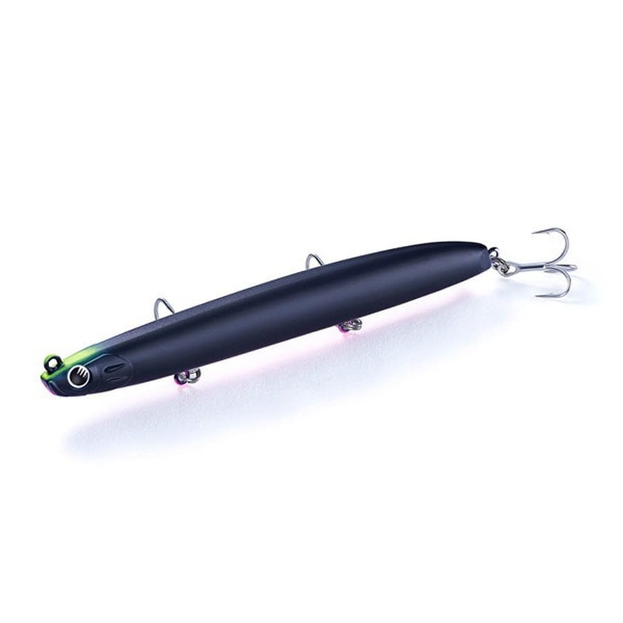 ヘッド上部に配置したアイにより、デッドスローでも弱々しいスラロームアクションを演出。流れに乗せることで、上流から流されてくるベイトを再現します。ロッドポジションとリトリーブスピードの調整により、水面直下から約30cmのレンジを自在にトレース可能。さらに、フローティングペンシルにありがちな飛距離不足を、マグネット重心移動システムとVGの搭載で解消しました。圧倒的な飛距離と素早い立ち上がりで、沖のサーフェスレンジを確実に攻略します。バチ抜け、サヨリ、マイクロベイトなど、様々なパターンに高次元でアジャストし、フィッシュイーターを魅了します。