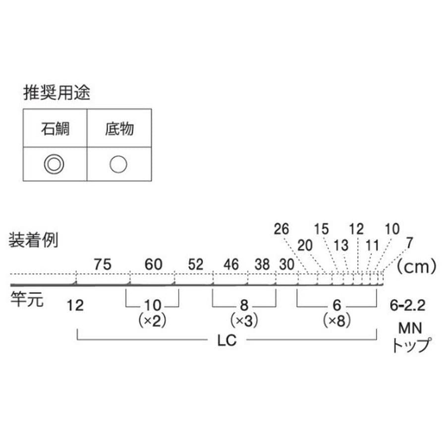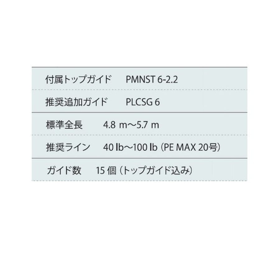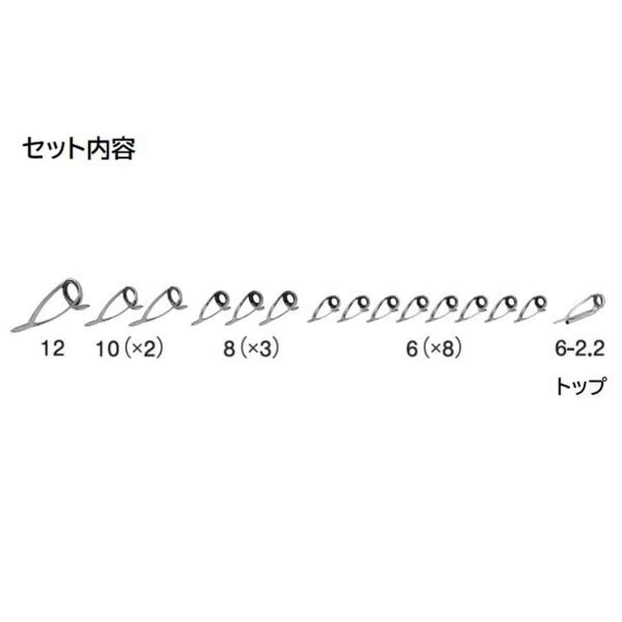 石鯛用 ※トップガイド入りです。★ガイド数:15個(トップガイド込み) 標準全長:4.8m~5.7m 推奨ライン:40lb~100lb(PE MAX20号) ※標準全長より長いブランクスの場合は、推奨ガイドをティップ部分に追加してください。