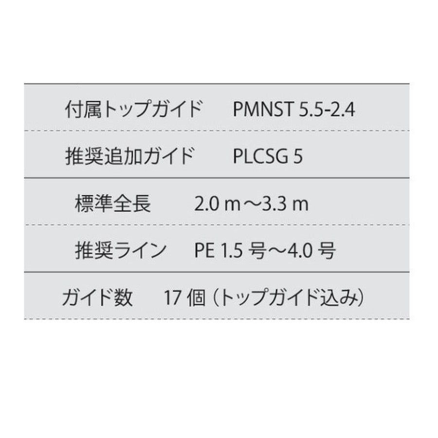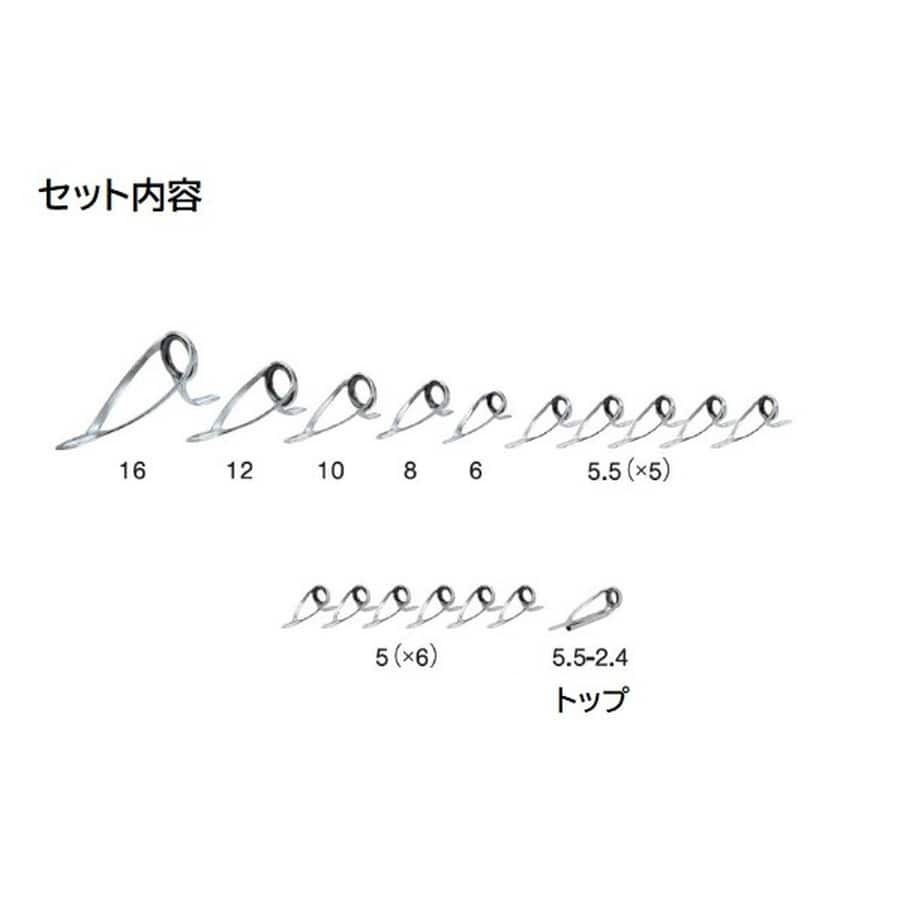 コマセ真鯛(ミディアム)用 トップガイド入りです。★ガイド数:17個(トップガイド込み) 標準全長:2.0m~3.3m 推奨ライン:PE1.5号~4.0号 ※標準全長より長いブランクスの場合は、推奨ガイドをティップ部分に追加してください。