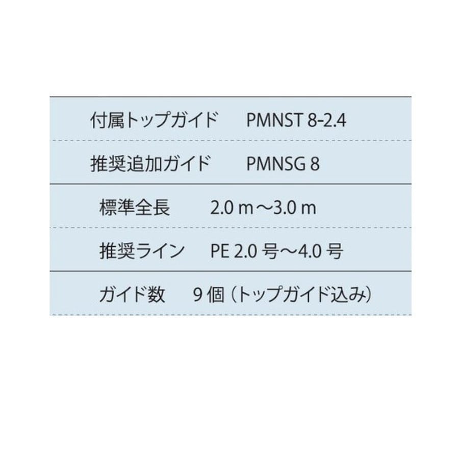 船胴突き五目用 トップガイド入りです。★ガイド数:9個(トップガイド込み) 標準全長:2.0m~3.0m 推奨ライン:PE2.0号~4.0号 ※標準全長より長いブランクスの場合は、推奨ガイドをティップ部分に追加してください。