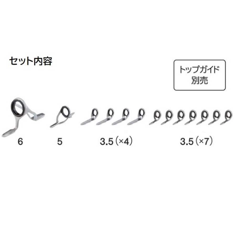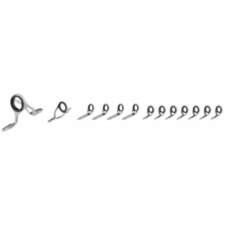 Fujiの最高級ガイドセット。チタンフレーム。※トップガイドは別売りです。ティップ径に合わせてお選びください。★ガイド数:13個(トップガイド別売) 標準全長:1.7m~2.0m 推奨ライン:3lb~5lb(PE MAX1.0号) ※標準全長より長いブランクスの場合は、推奨ガイドをティップ部分に追加してください。