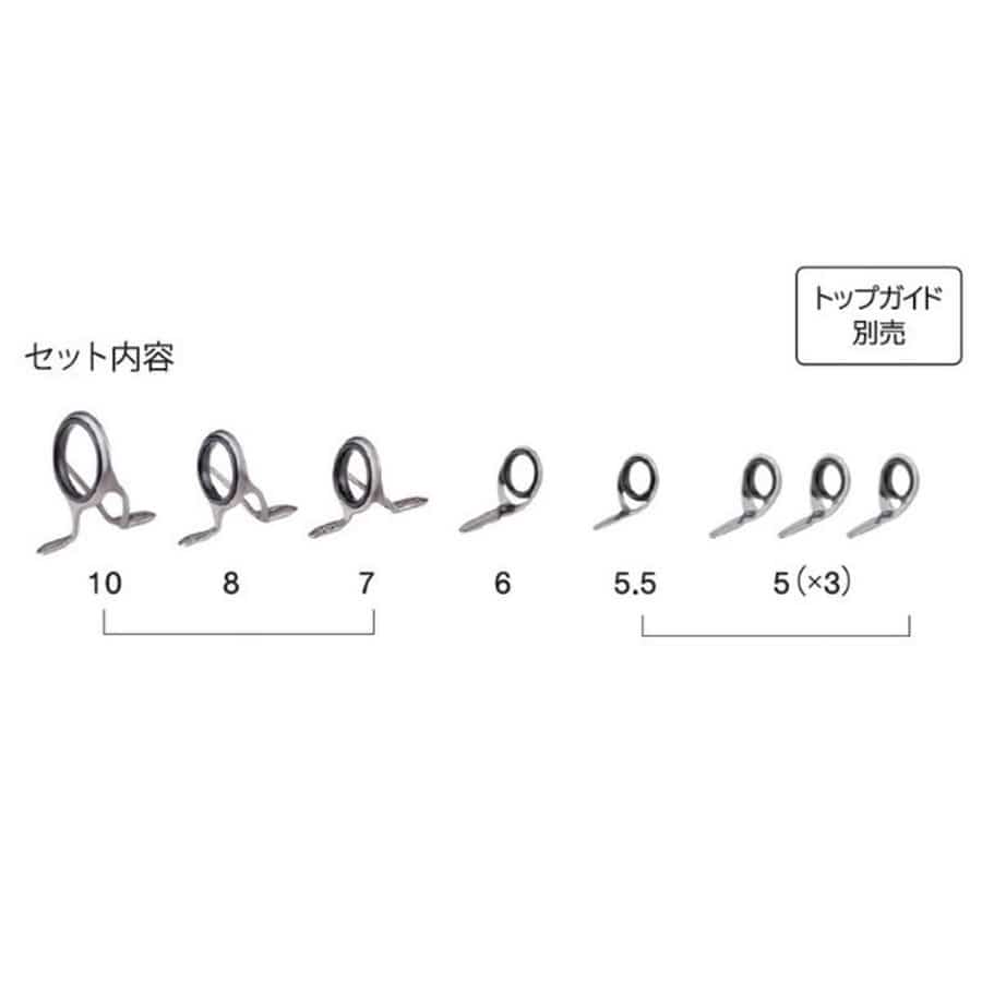 ガイド数:8個(トップガイド別売) 標準全長:5ft~7ft 推奨ライン:5lb~20lb(PE MAX1.5号) ※標準全長より長いブランクスの場合は、推奨ガイドをティップ部分に追加してください。